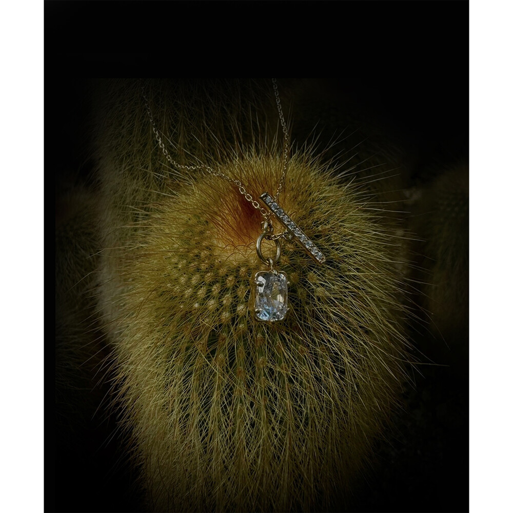 2캐럿크기의 스퀘어 다이아 시뮬렛이 포인트가 되며, 바에 10개의 다이아시뮬렛의 고급스러운 셋팅으로 고급스럽습니다.