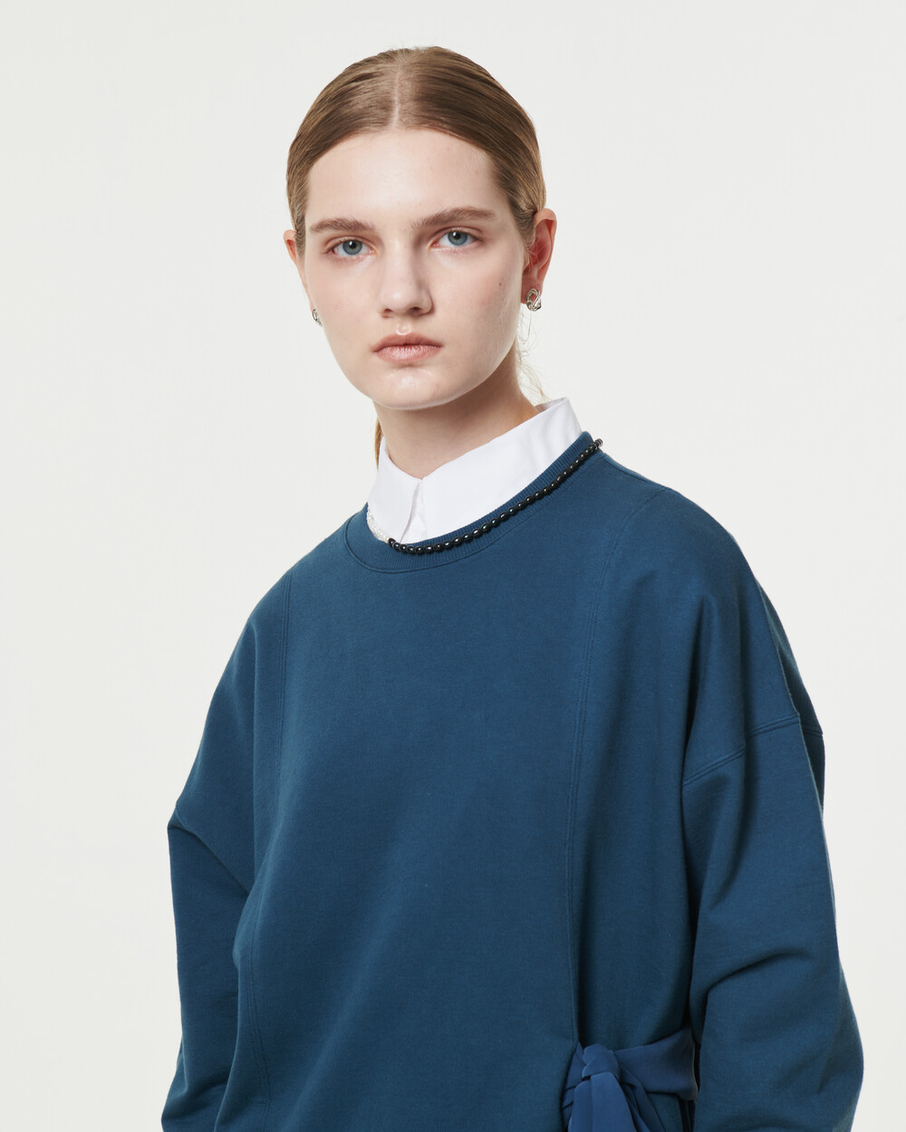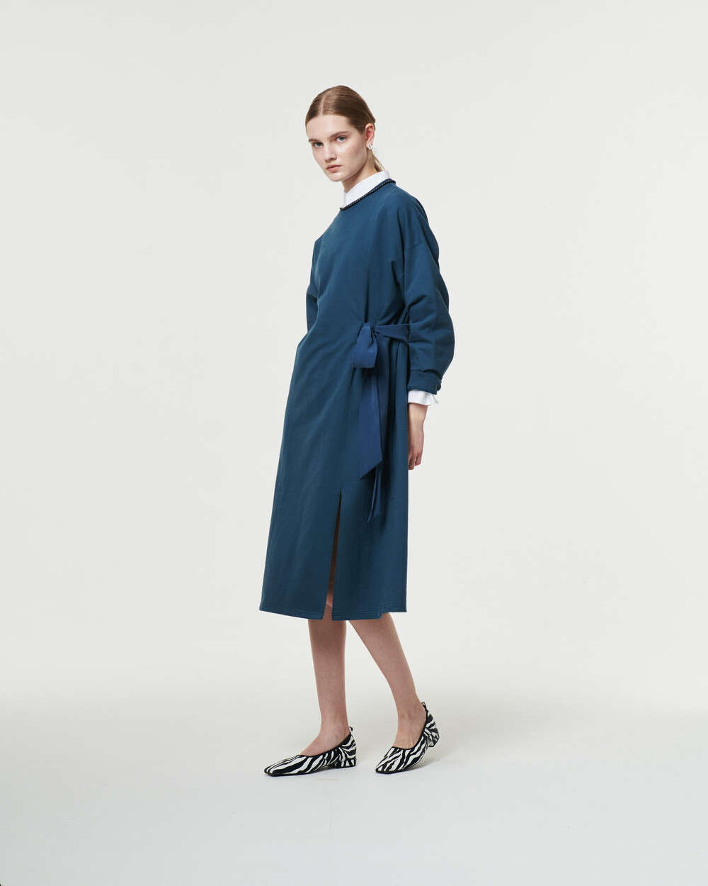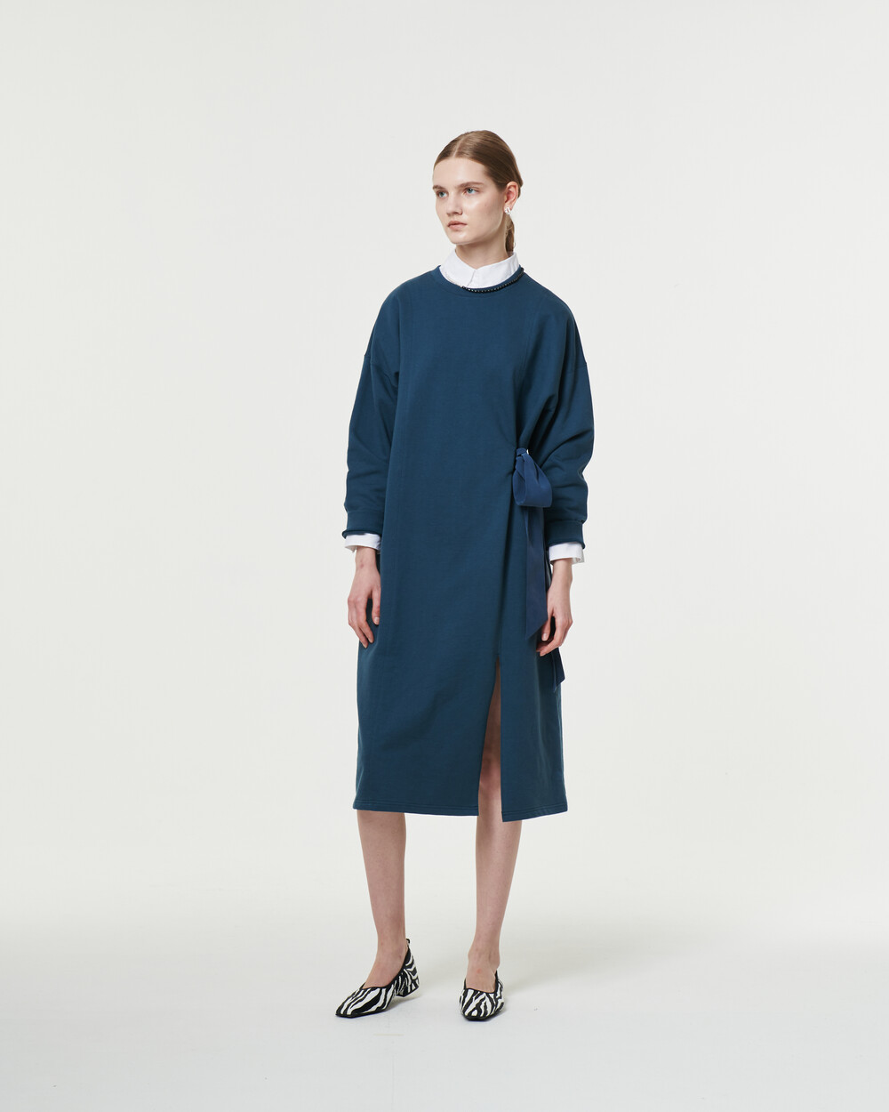 앞트임이 있으며 허리부분에 끈으로 실루엣 조절을 할 수 있습니다.