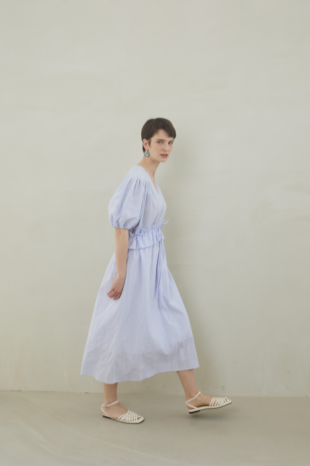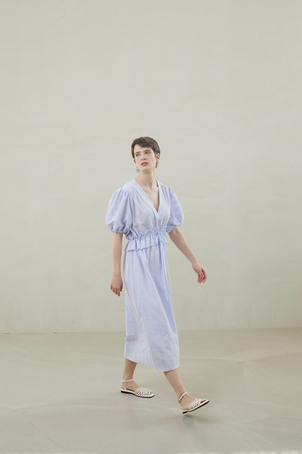 깊게 파인 브이네크라인과 소매의 실루엣으로 인해 날씬해 보이며, 허리부분의 스트링으로 실루엣을 조절할 수 있습니다.