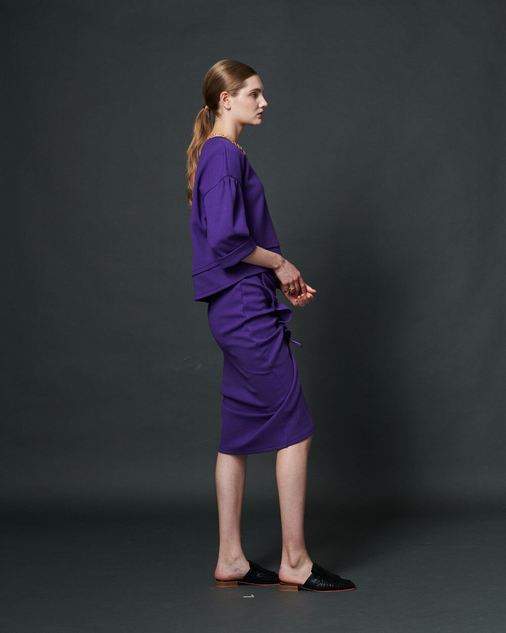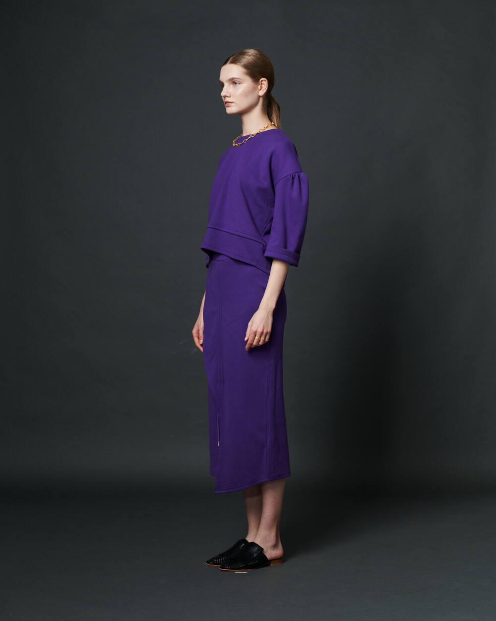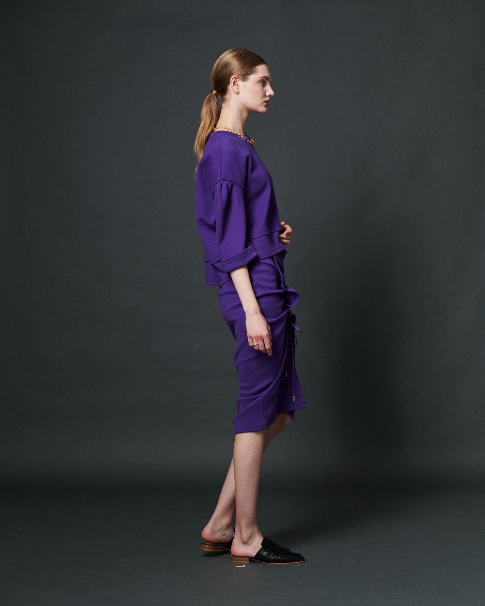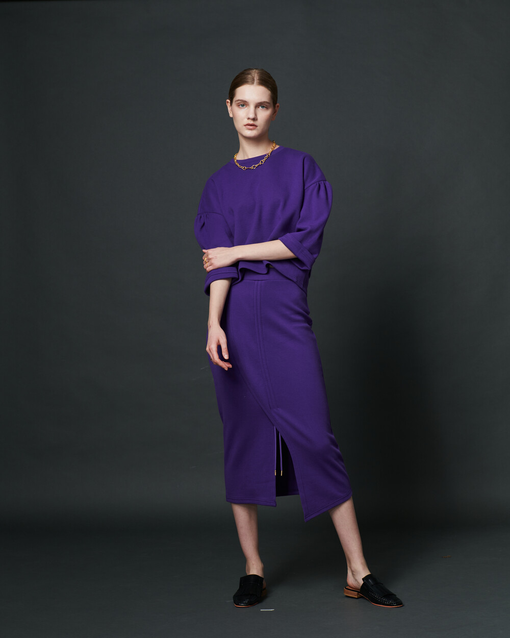 앞중심에 트임이 있고, 금속엔딩팁의 스트링을 연출하기에 따라 스커트의 길이와 디테일을 조절 할 수 있습니다.