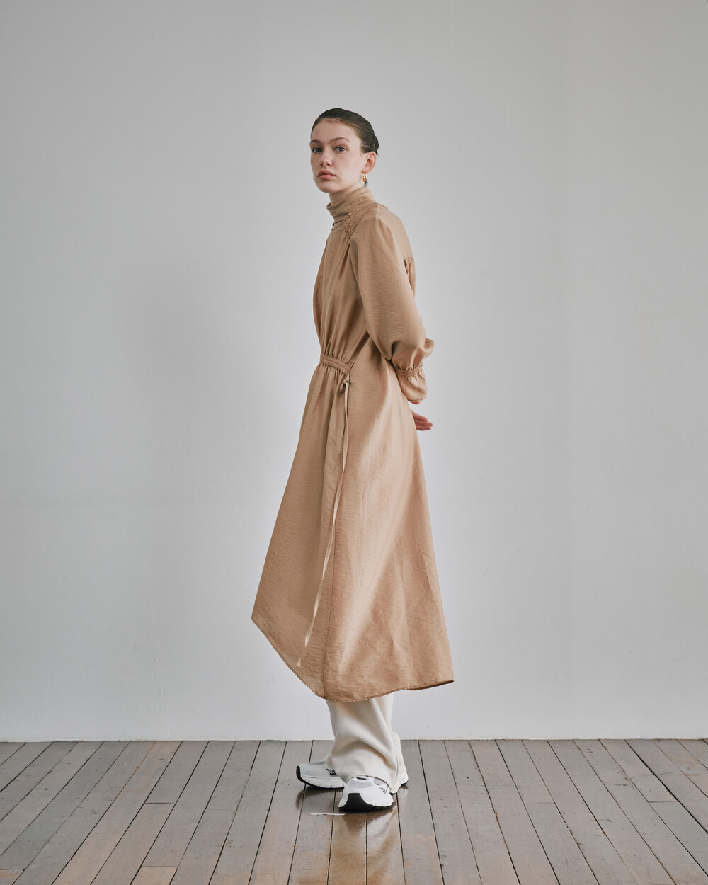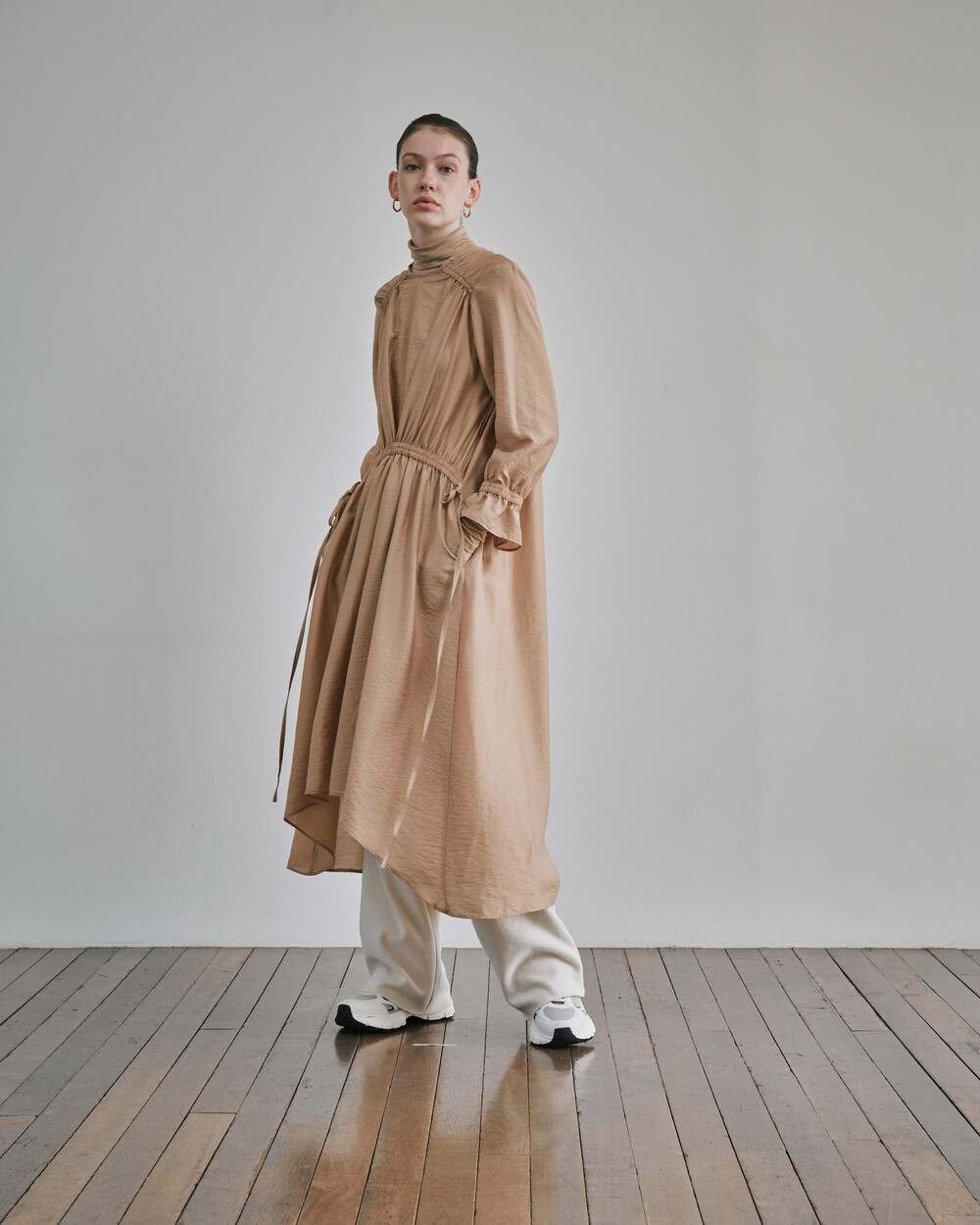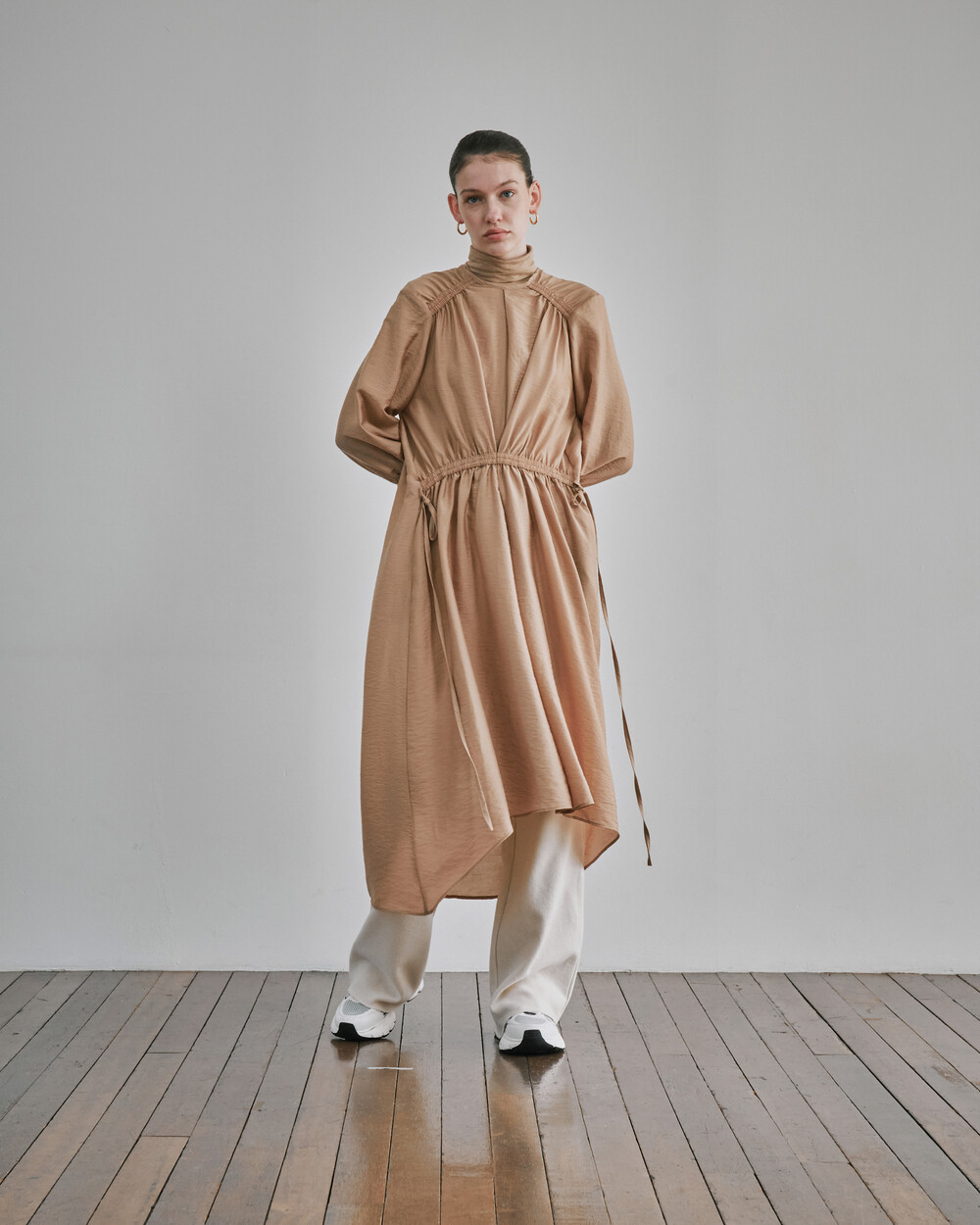 어깨와 허리부분의 셔링디테일이 매력적인 루즈한 실루엣의 드레스 입니다.