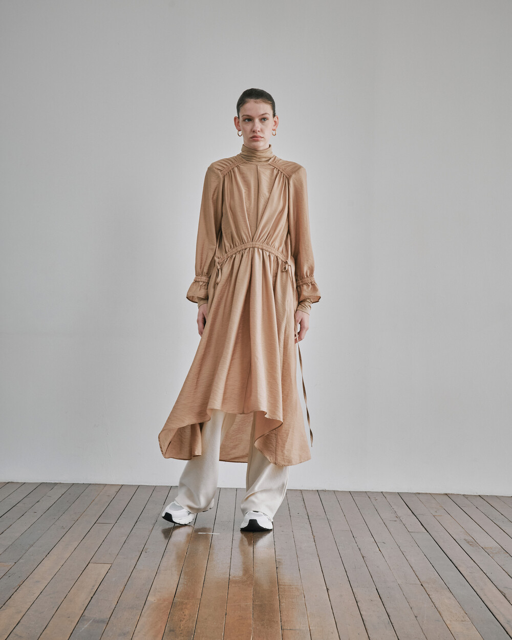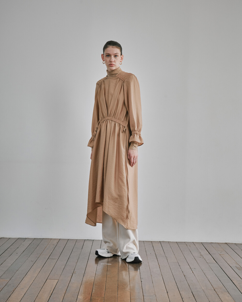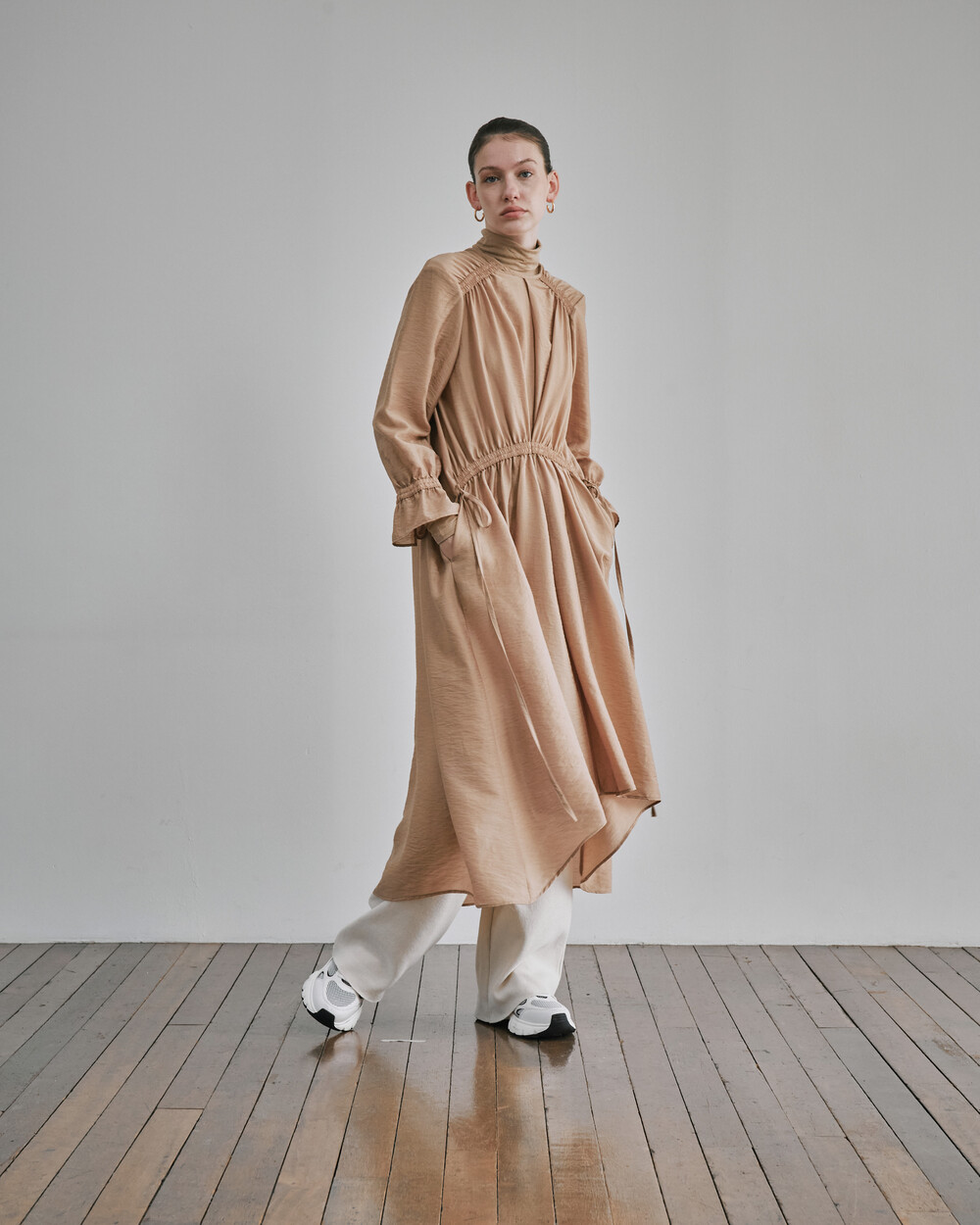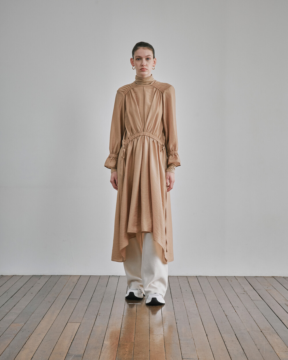 어깨와 허리부분의 셔링디테일이 매력적인 루즈한 실루엣의 드레스 입니다.