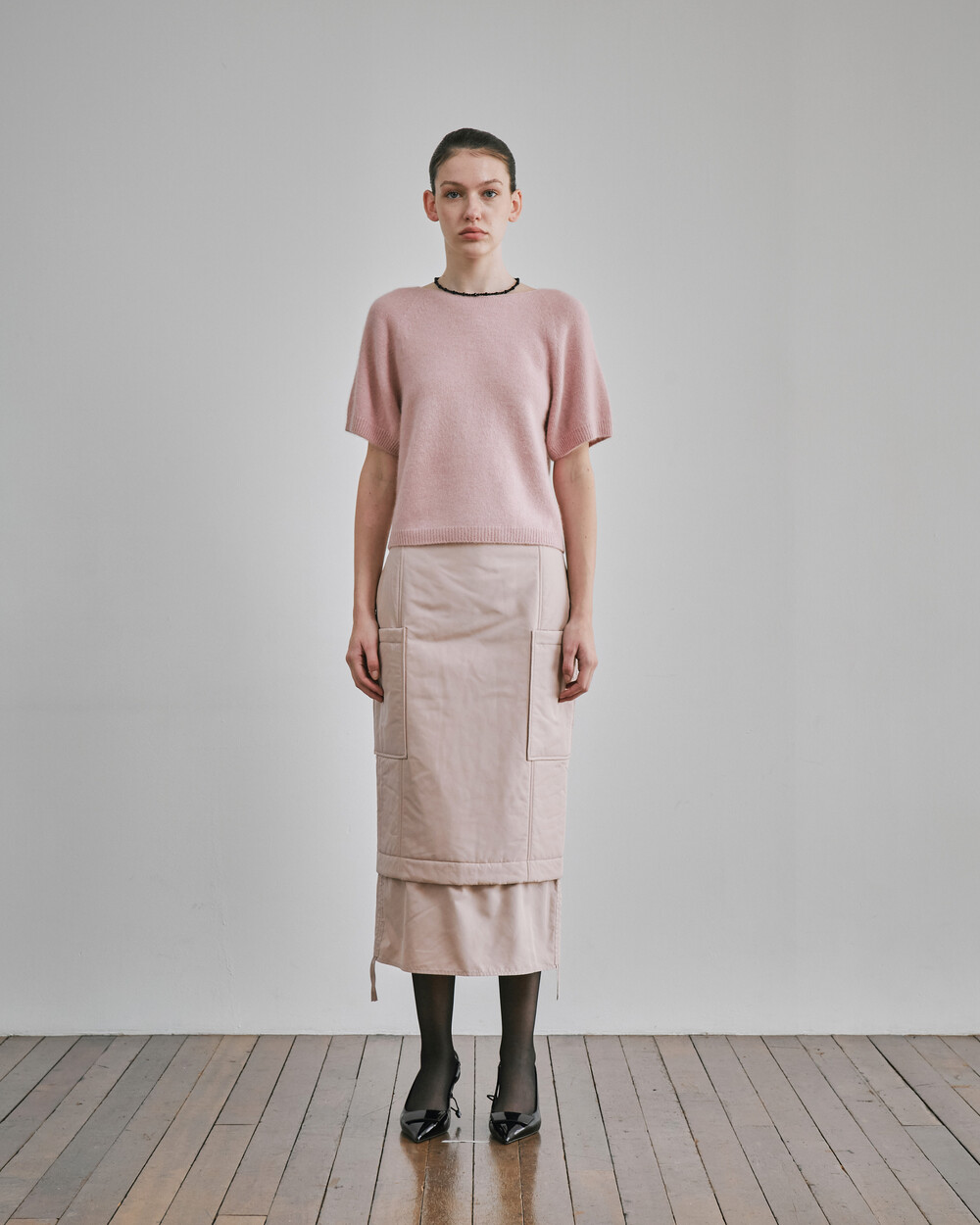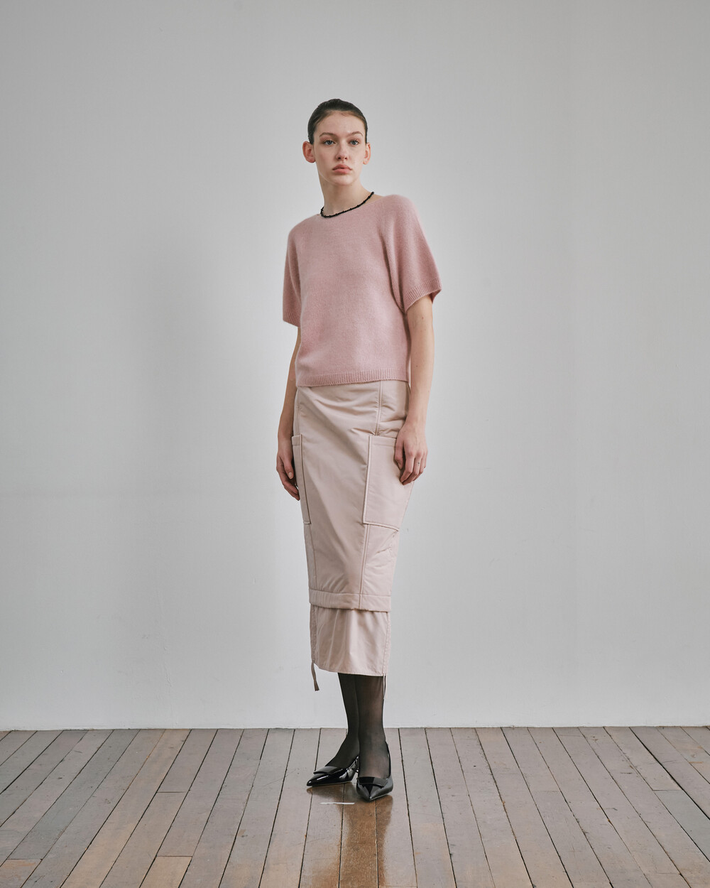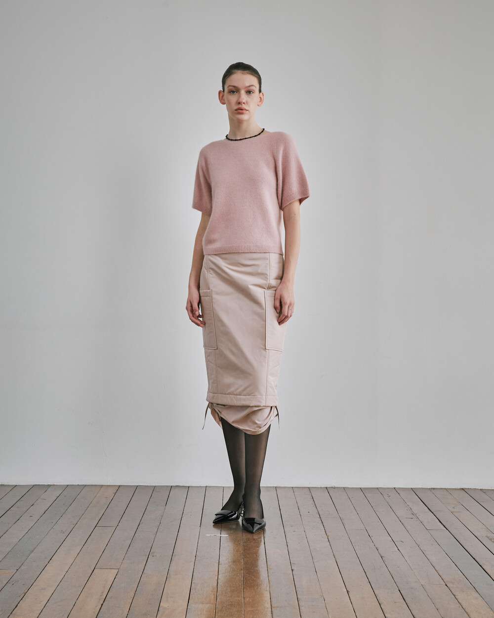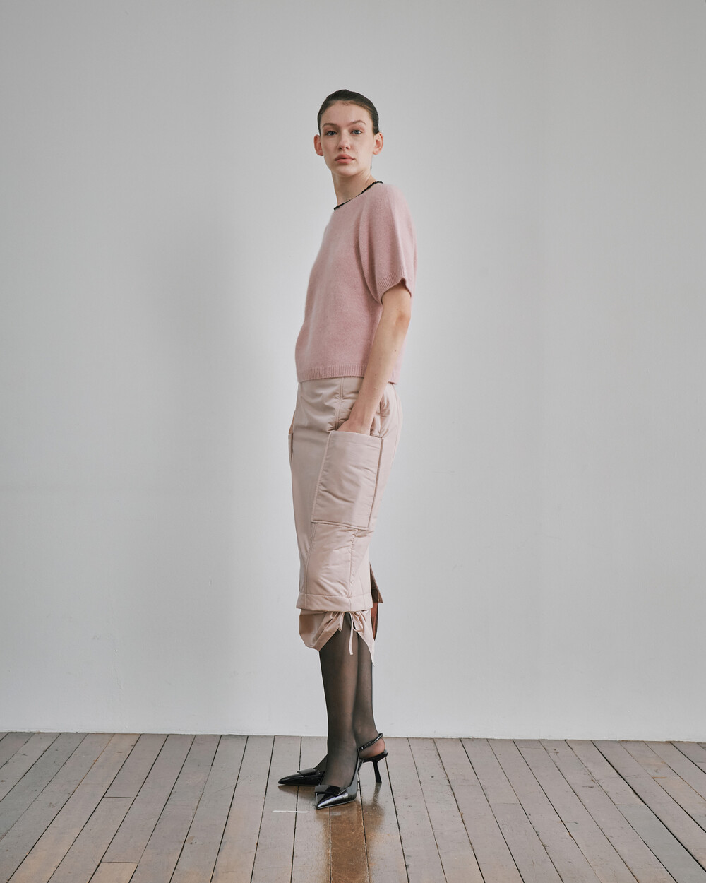 스커트 하단의 스트링으로 길이와 디테일의 변화가 재미있는 디자인 입니다.