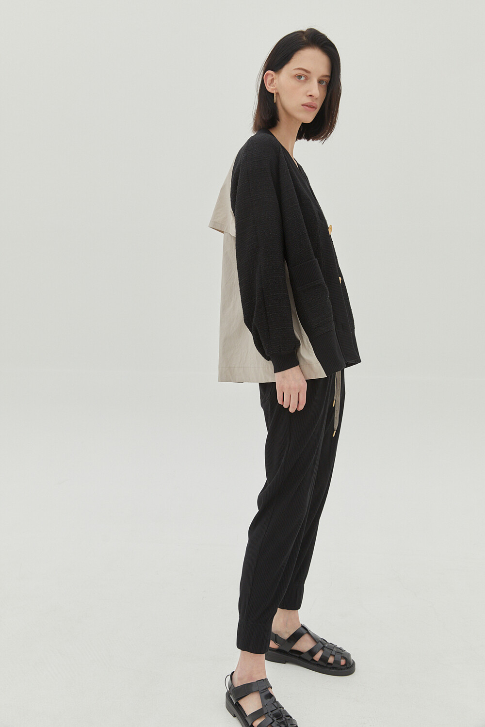 앞과 뒤가 다른 소재로 디자인되어 지루하지 않고, 넉넉한 실루엣으로 편안하게 착용하시기 좋습니다.