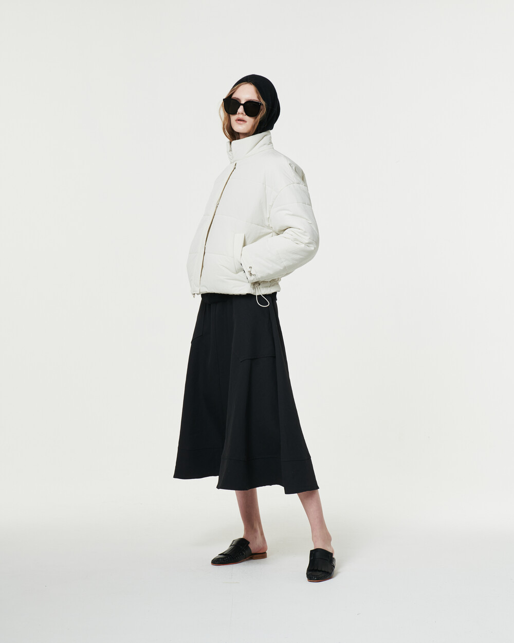 밑단부분의 스트링을 활용하여 실루엣조절이 가능합니다.