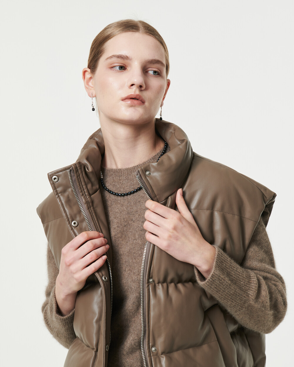 [sold out] Dana Eco Leather Padded Vest_mocha