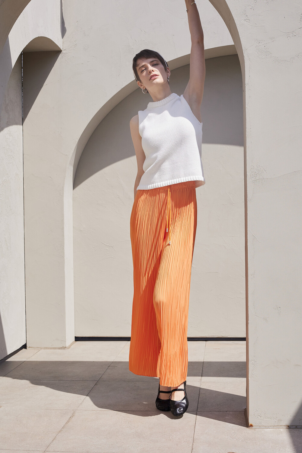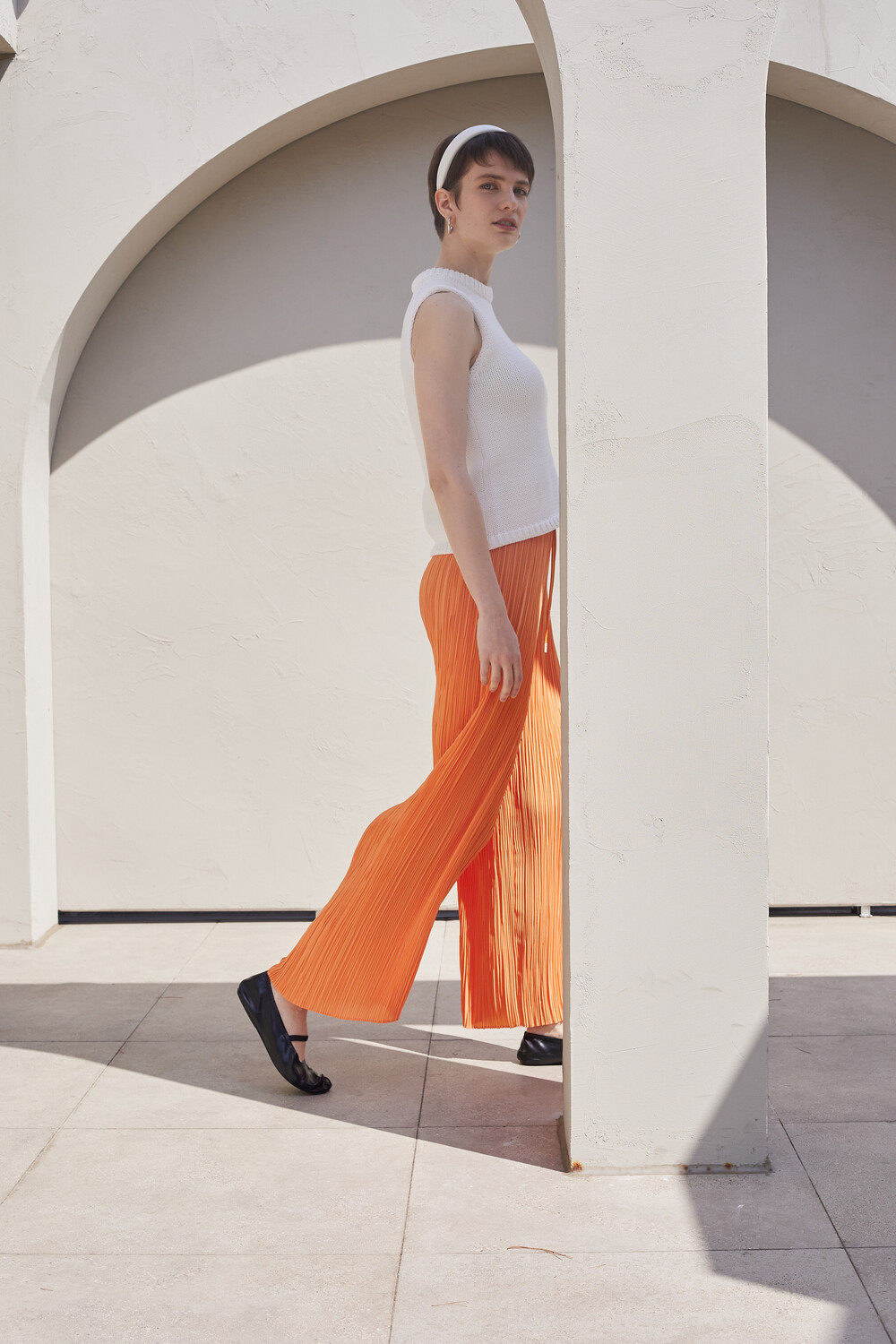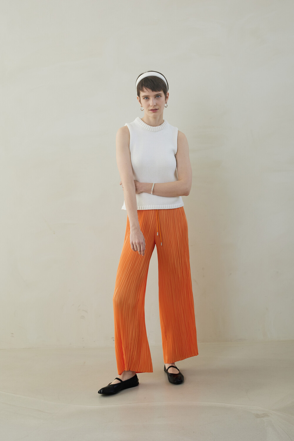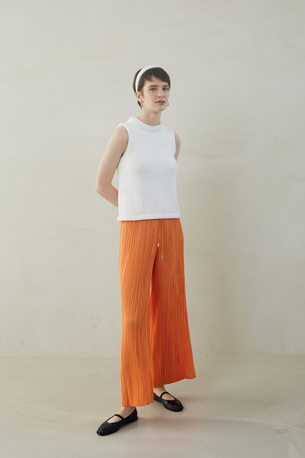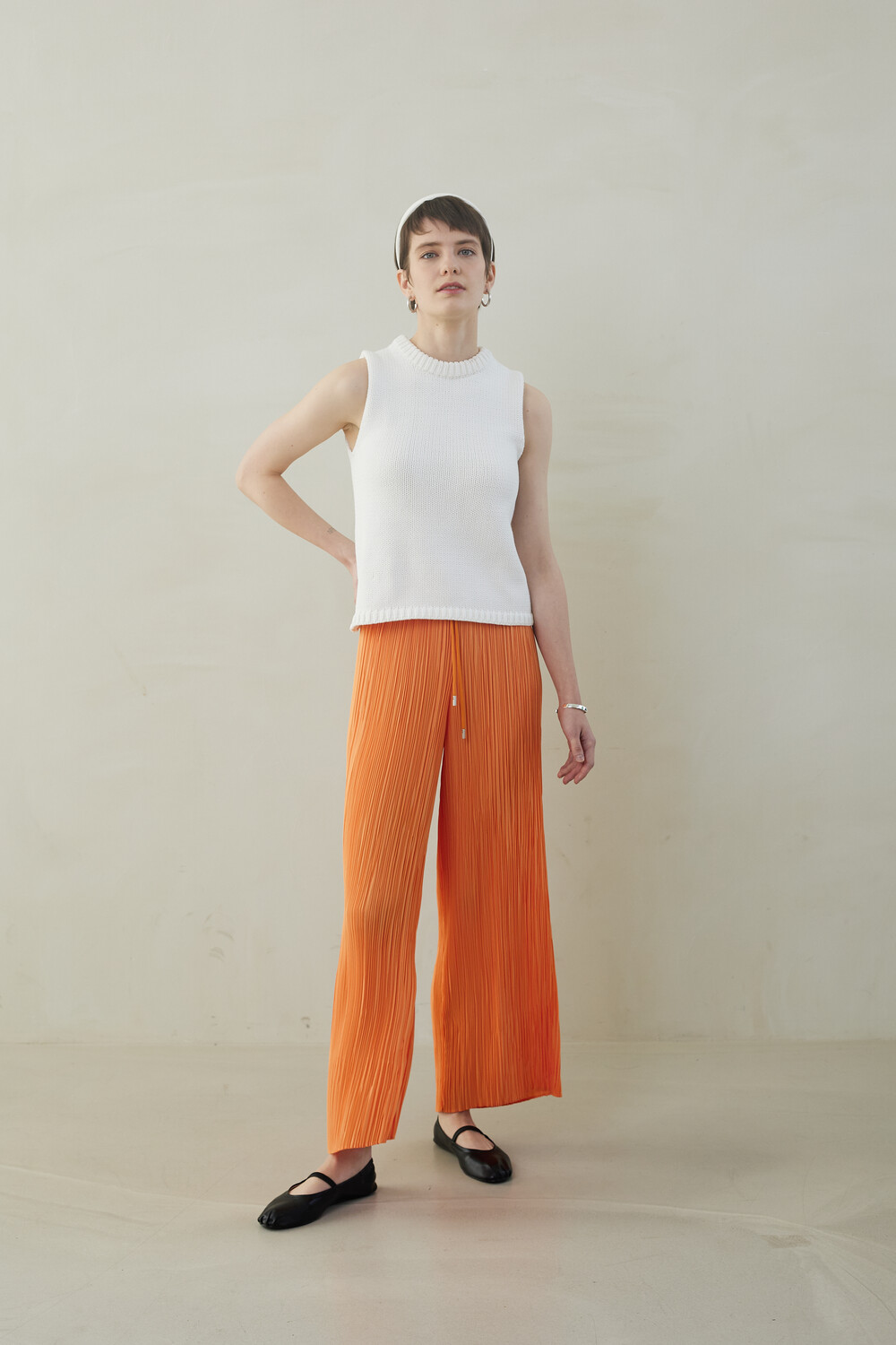 브랜드에서 직접 개발한 소재로 제작한 썸머 플리츠 팬츠입니다.