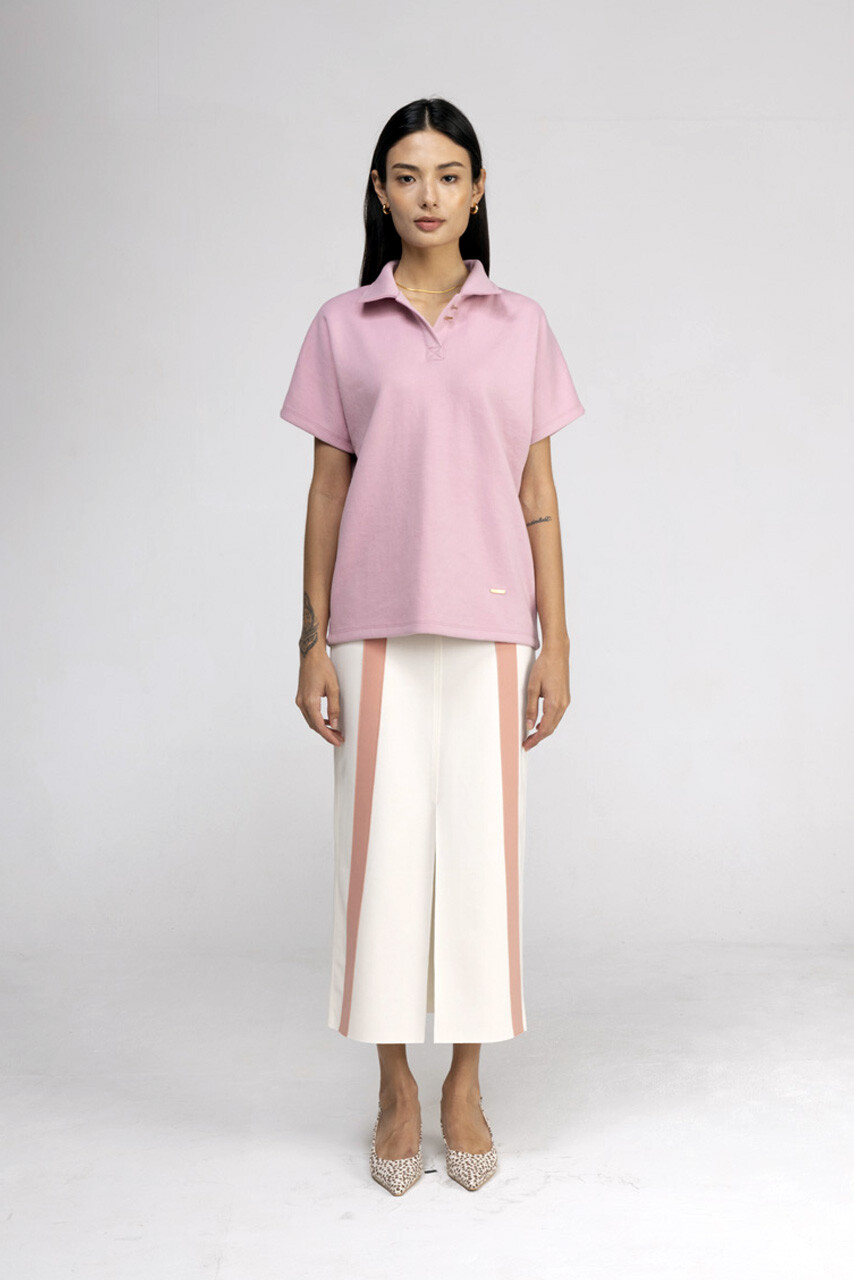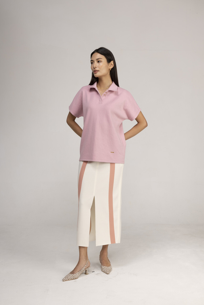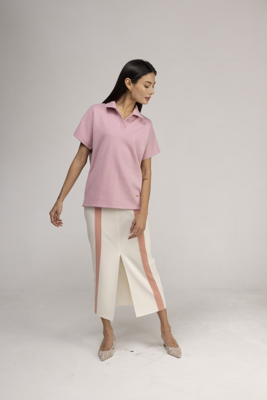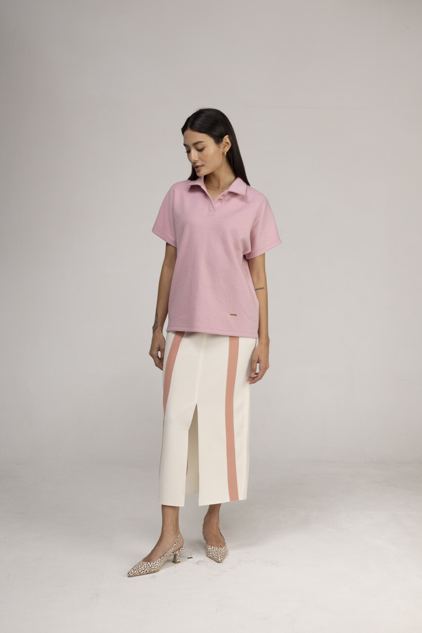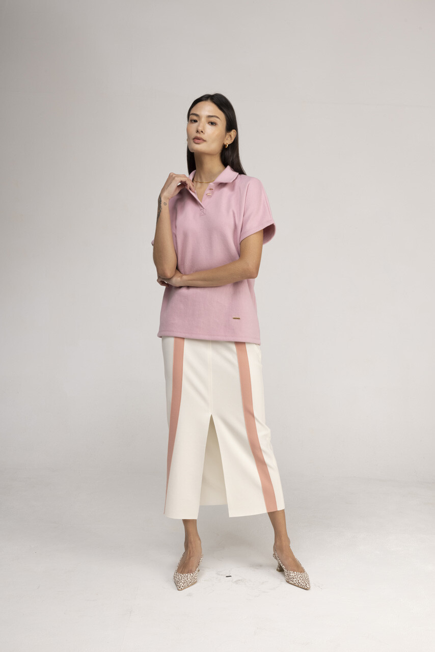 포인트 컬러배색으로 슬림 해 보이는 디자인의 스트레이트실루엣 스커트 입니다.
