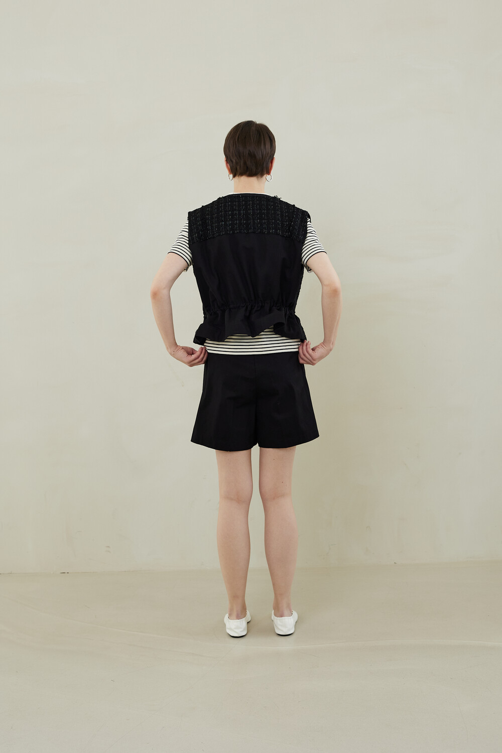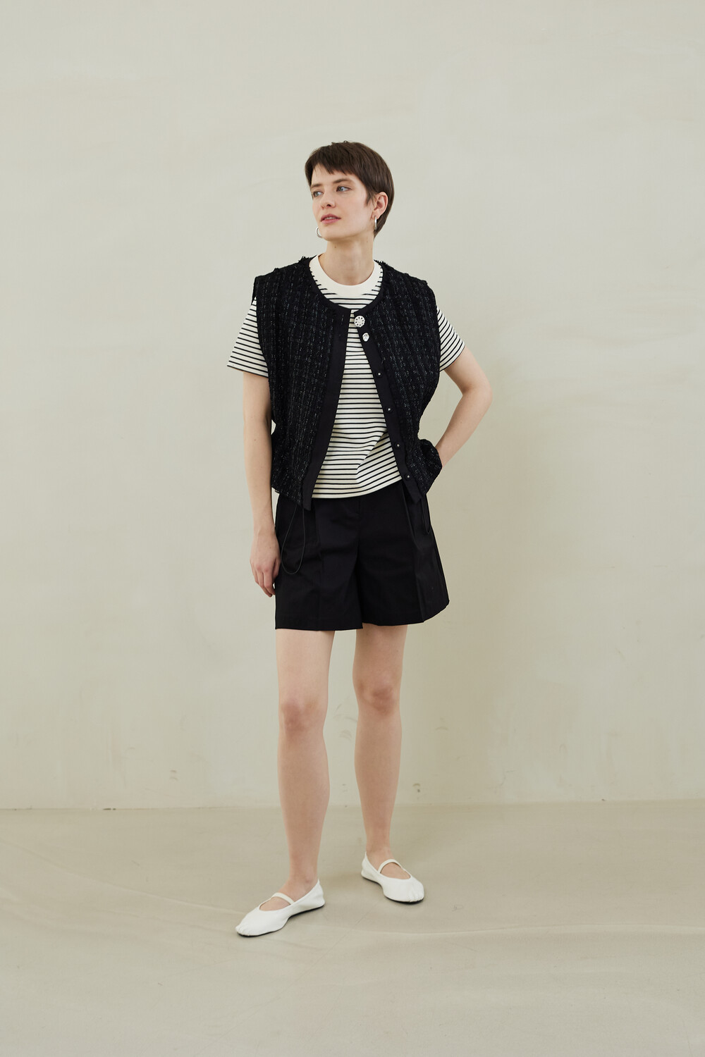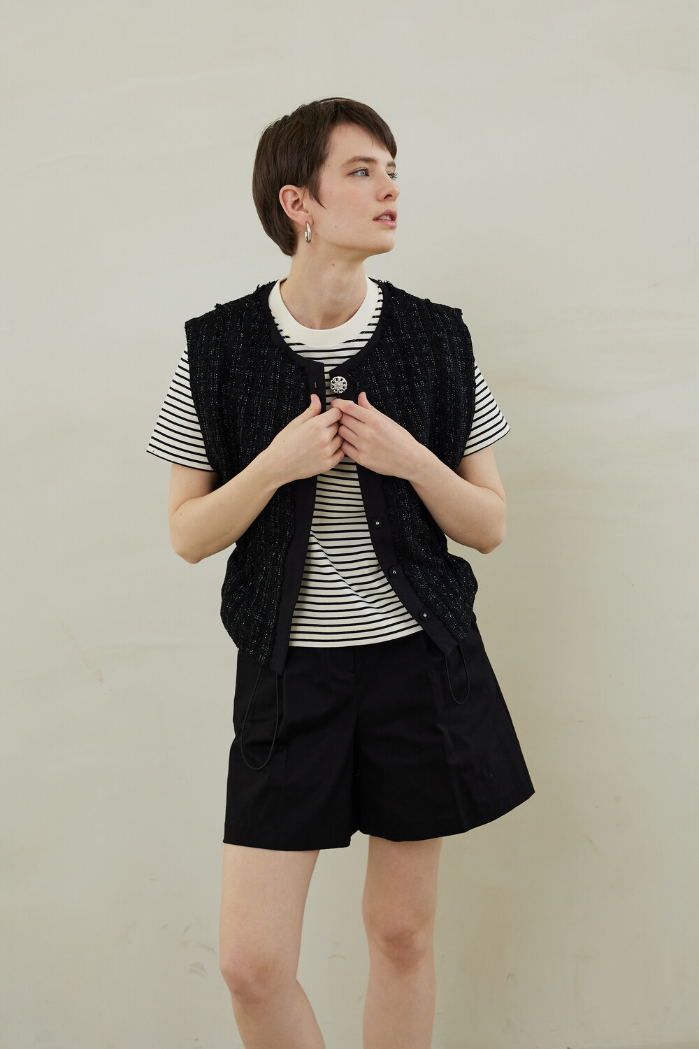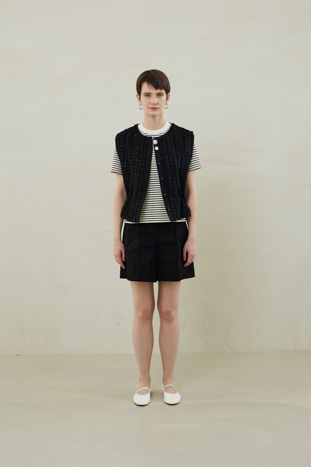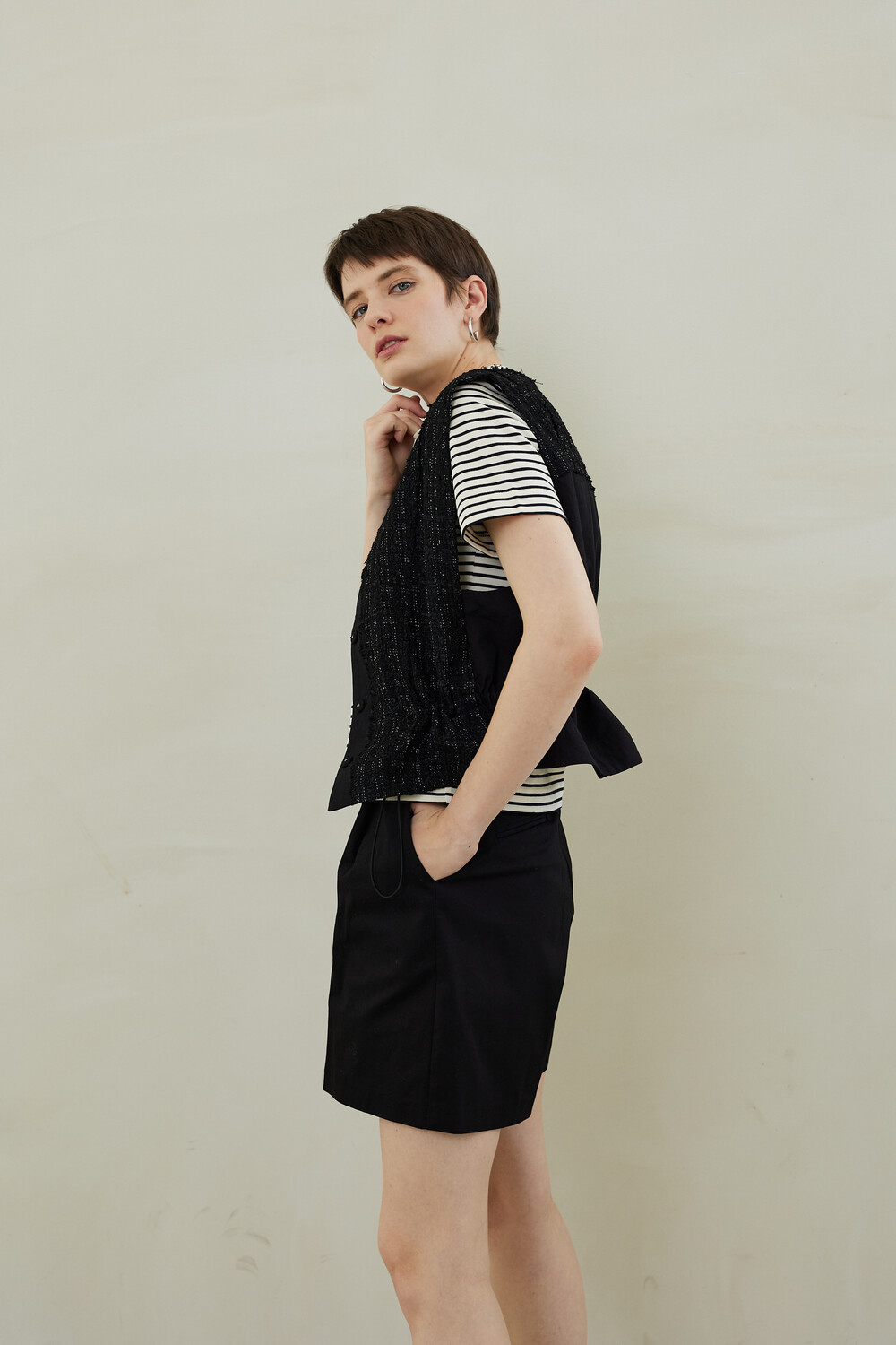 트위드원단과 린넨원단의 조화로우며, 허리부분의 스트링으로 실루엣연출이 자유롭습니다.
