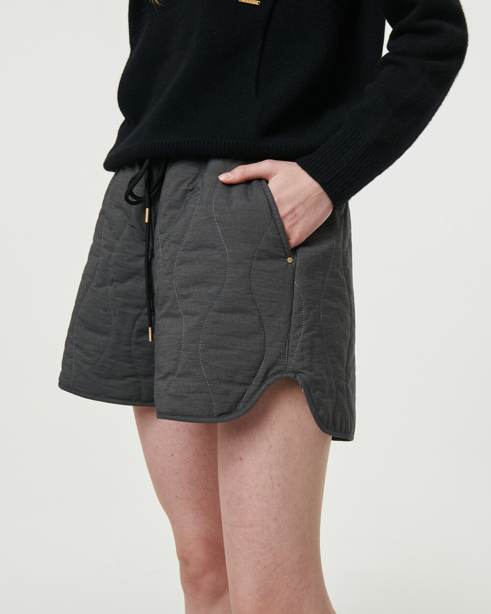 베이직한 실루엣의 패딩원단의 숏팬츠입니다.