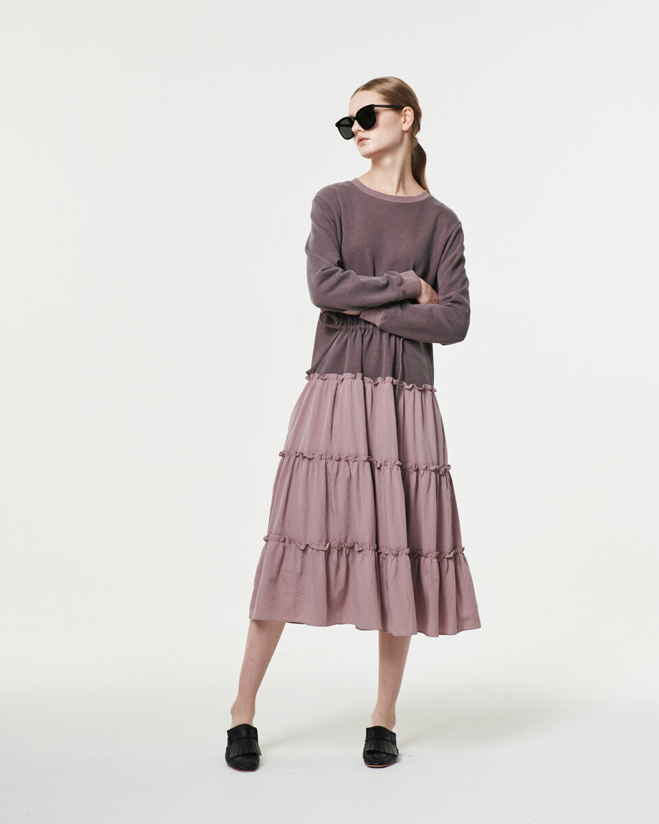 퍼플과 브라운의 오묘한 조화와 빈티지한 워싱이 돋보이는 저지원단이 매력적인 아이템입니다.
