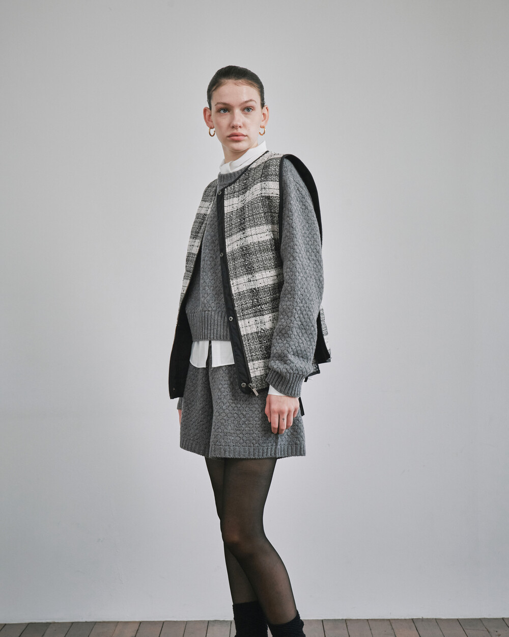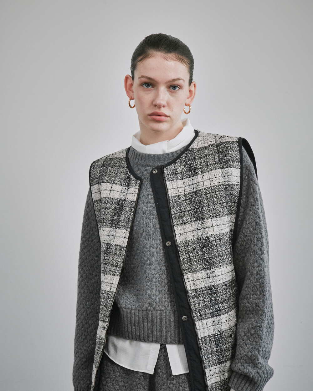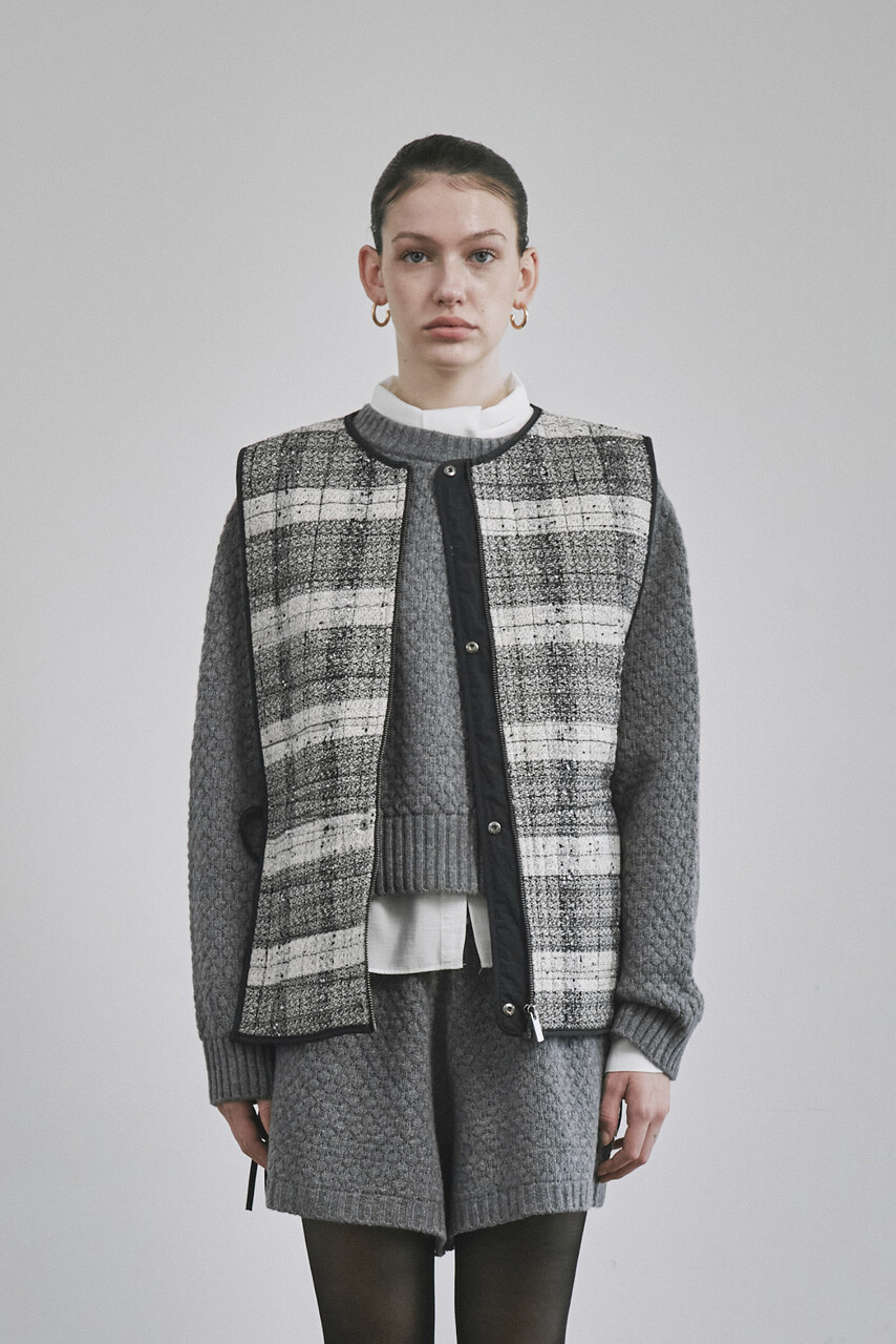 단색면과 고급스러운 짜임의 체크직조원단면, 두가지 느낌의 베스트를 연출하실 수 있습니다.