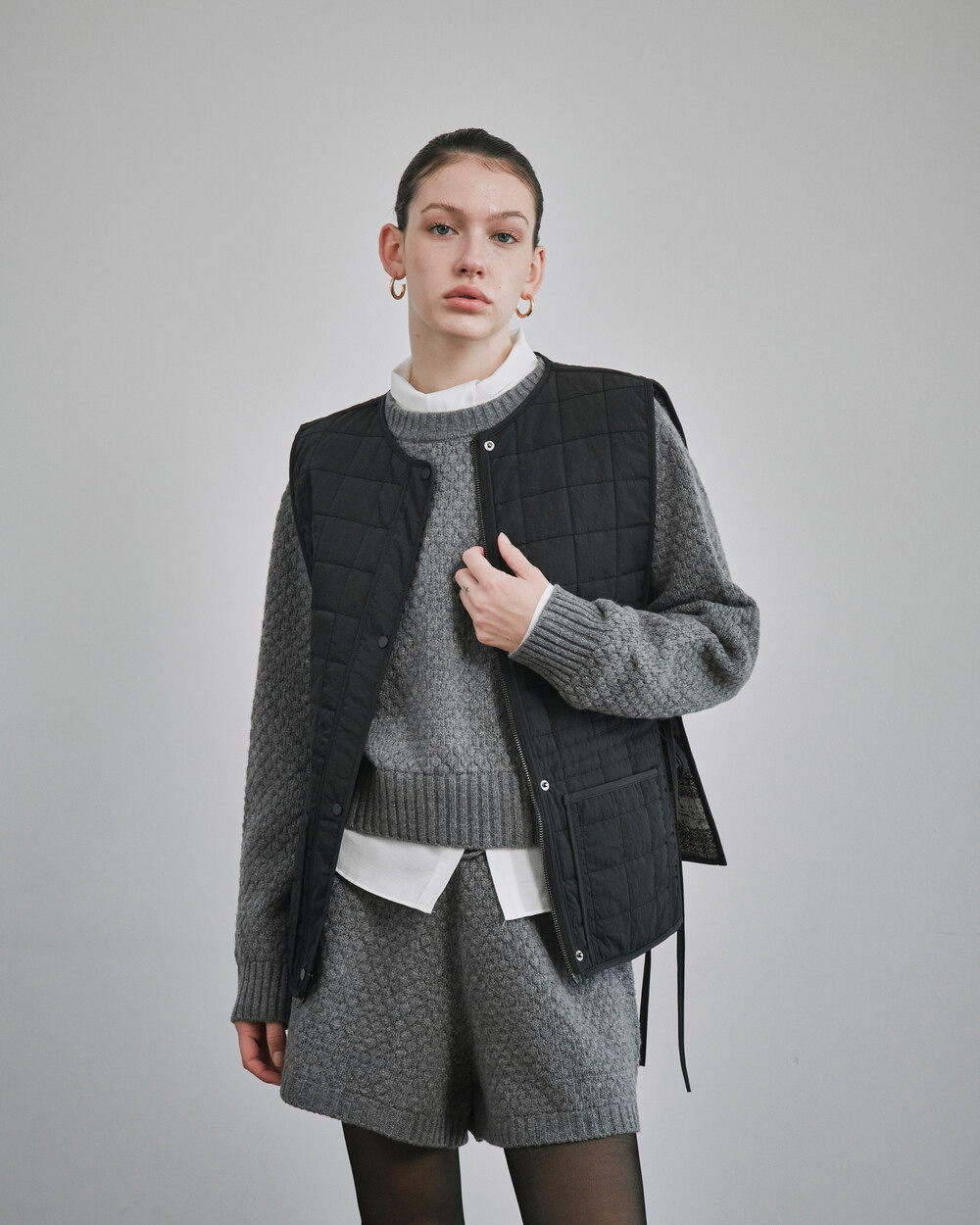 [sold out] alisa reversible padded vest_black