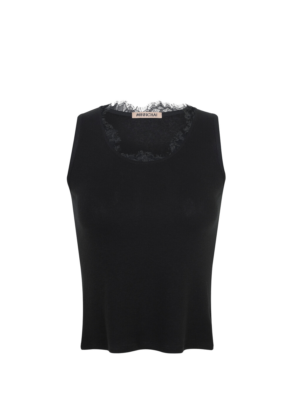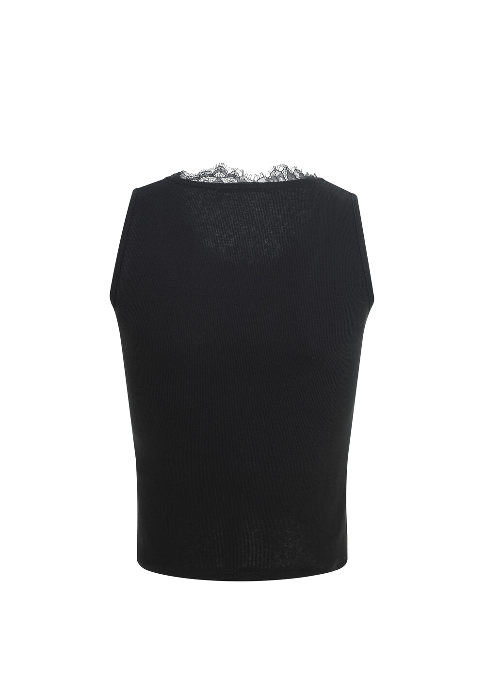 신축성이 좋은 은은한 골지 조직으로 제작된 레이스 민소매 울 니트 탑입니다.