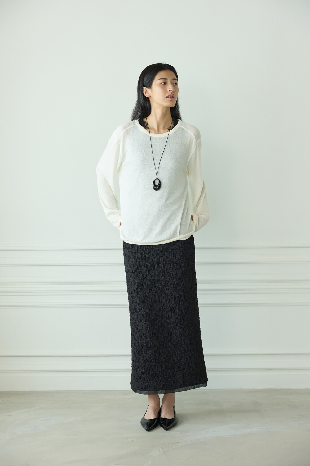 직접 염색한 레이스로 목둘레를 강조해 주어, 전체적인 룩에 디테일을 살려줄 수 있는 편안하고 독특한 아이템입니다.