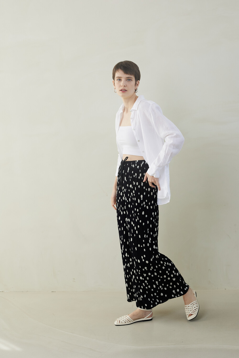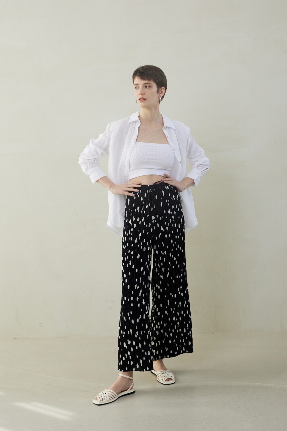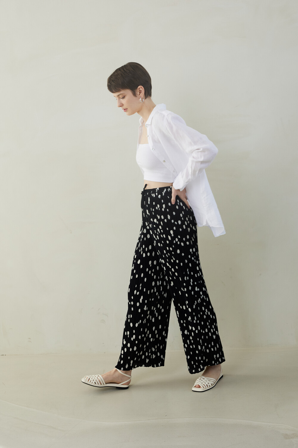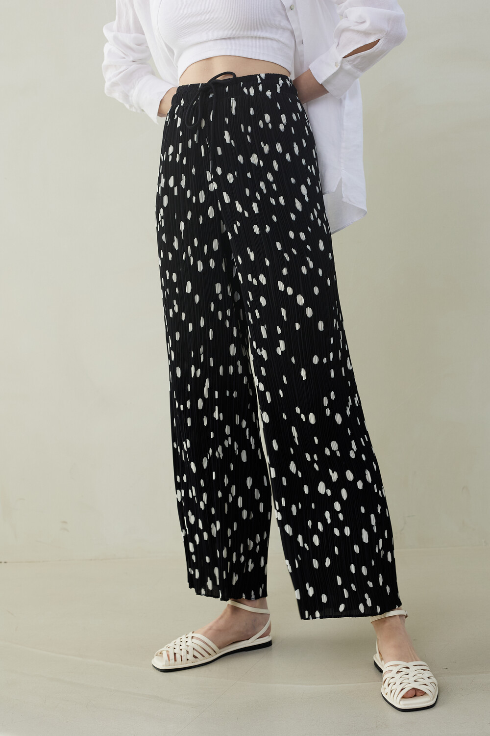 SUMMER DOT PLEATS PANTS_black