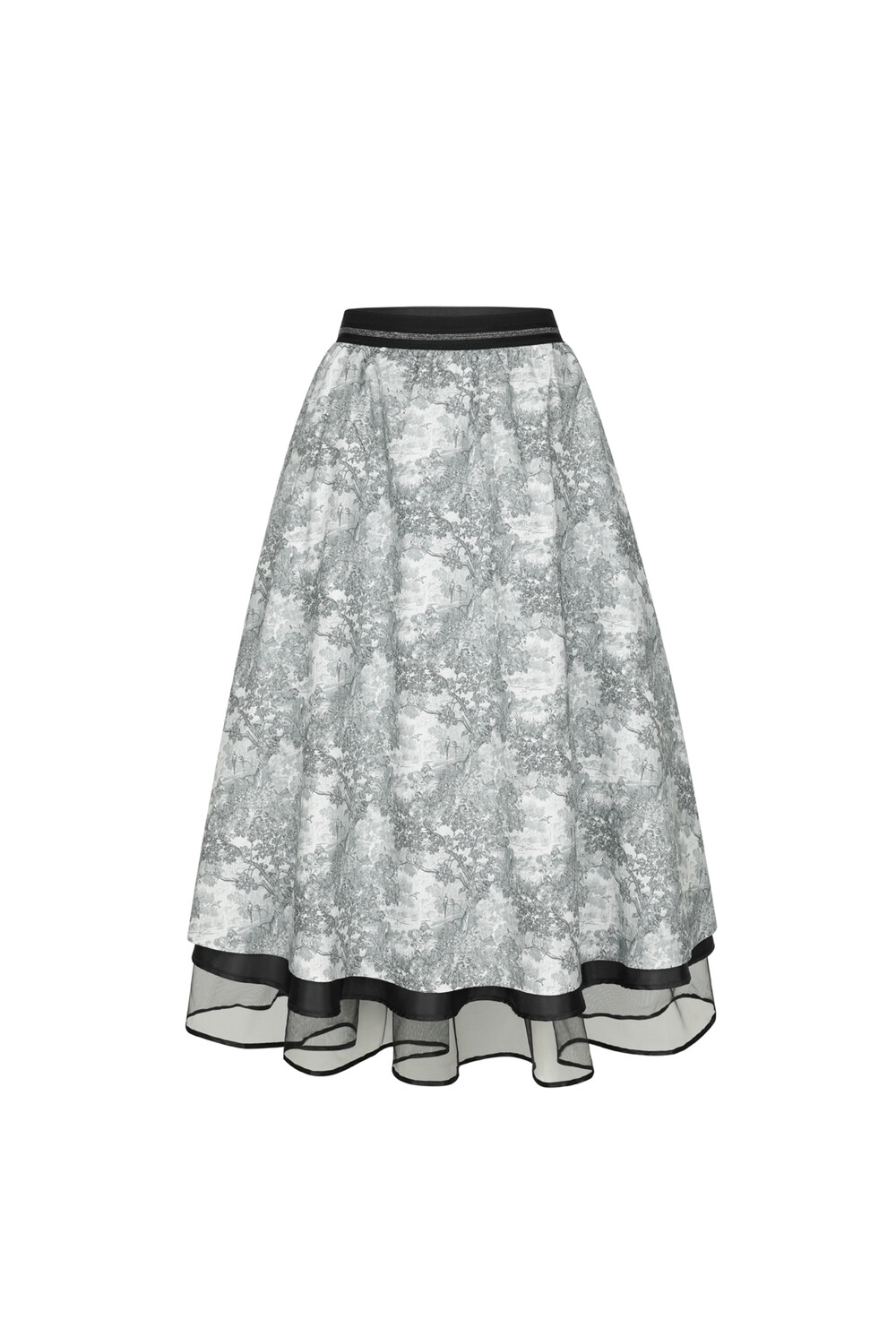숲 풍경의 프린트가 되어있는 스커트와 튤스커트 두가지 중 선택하여 착용하실 수 있는 리버서블 스커트 입니다.