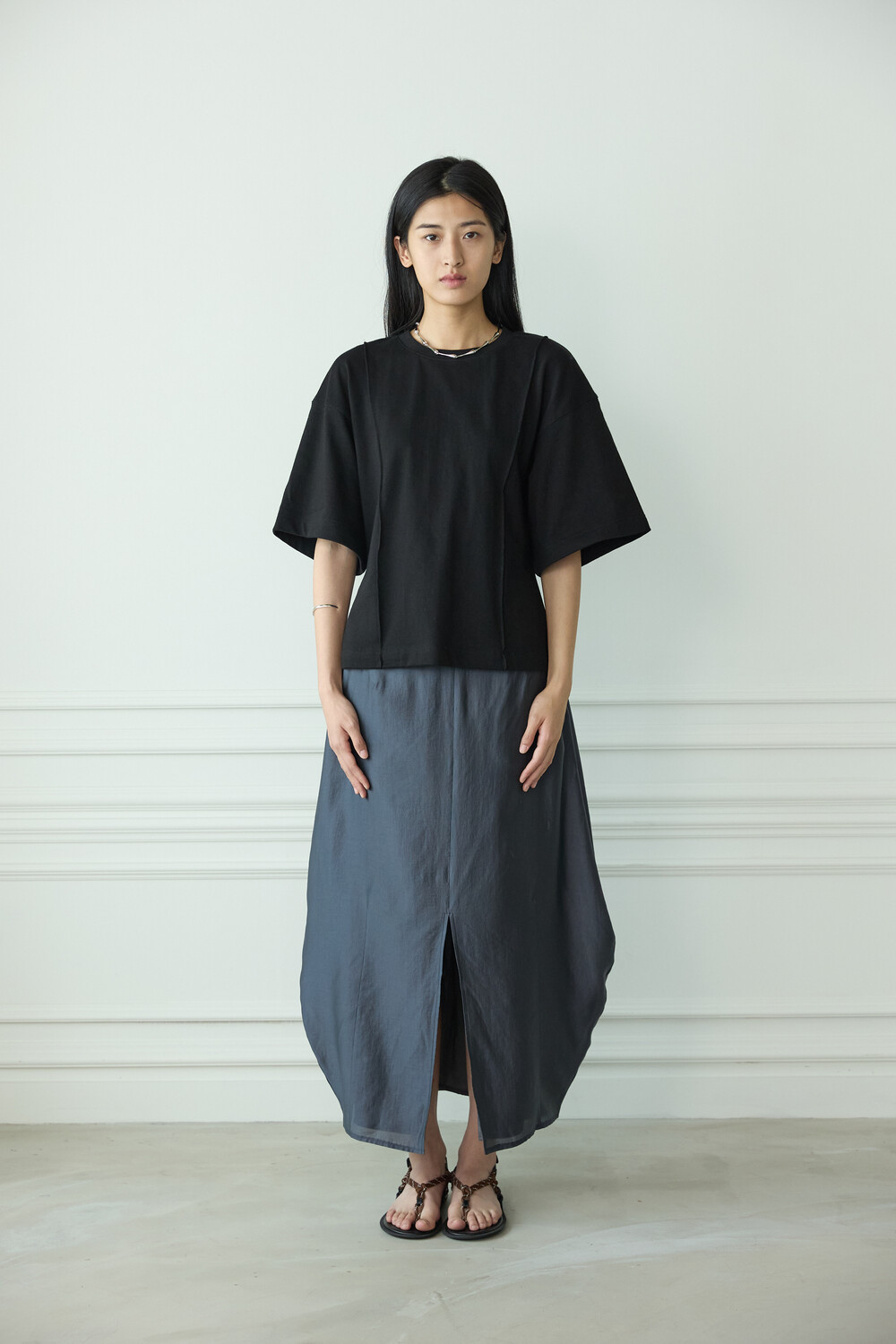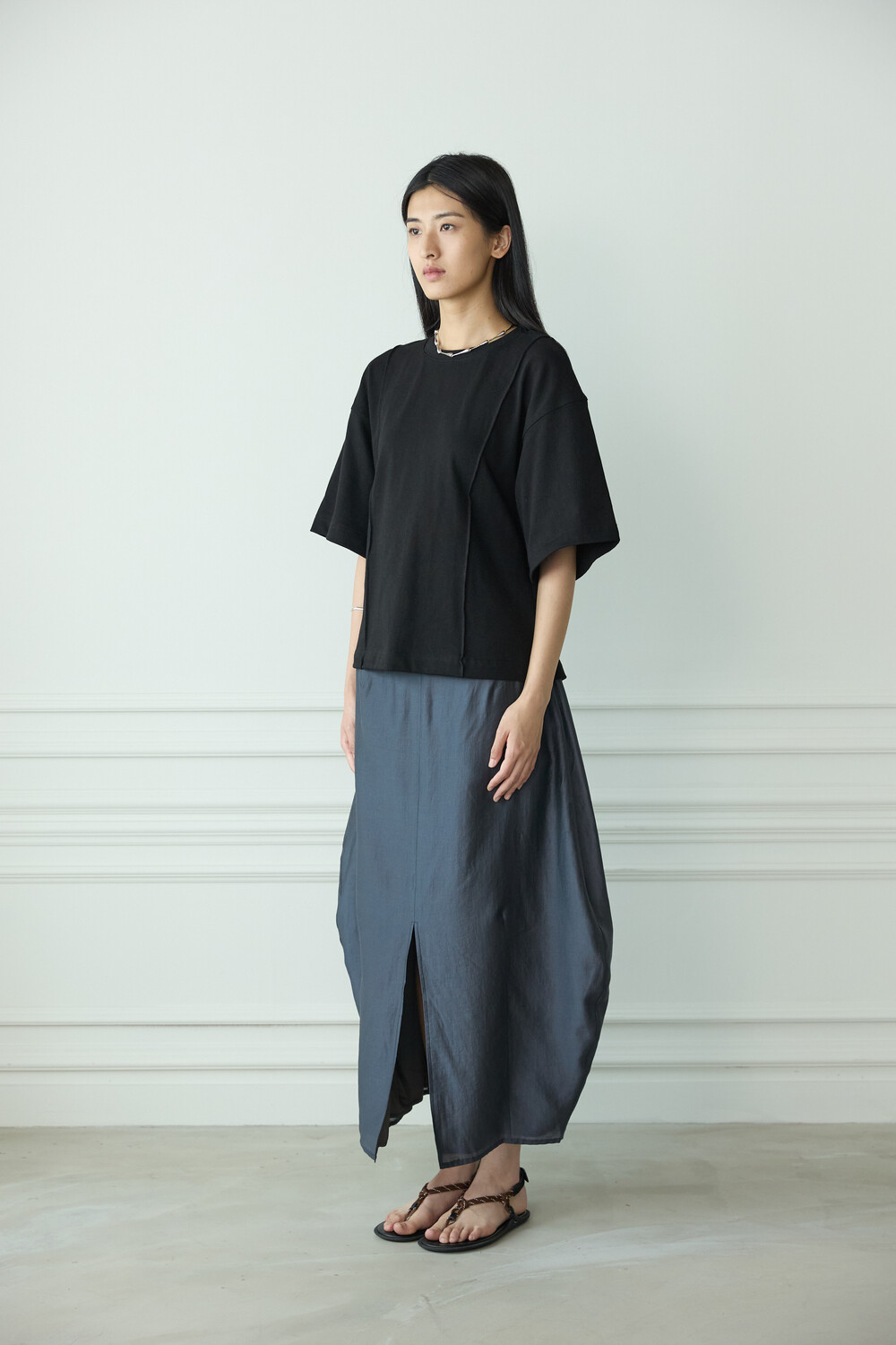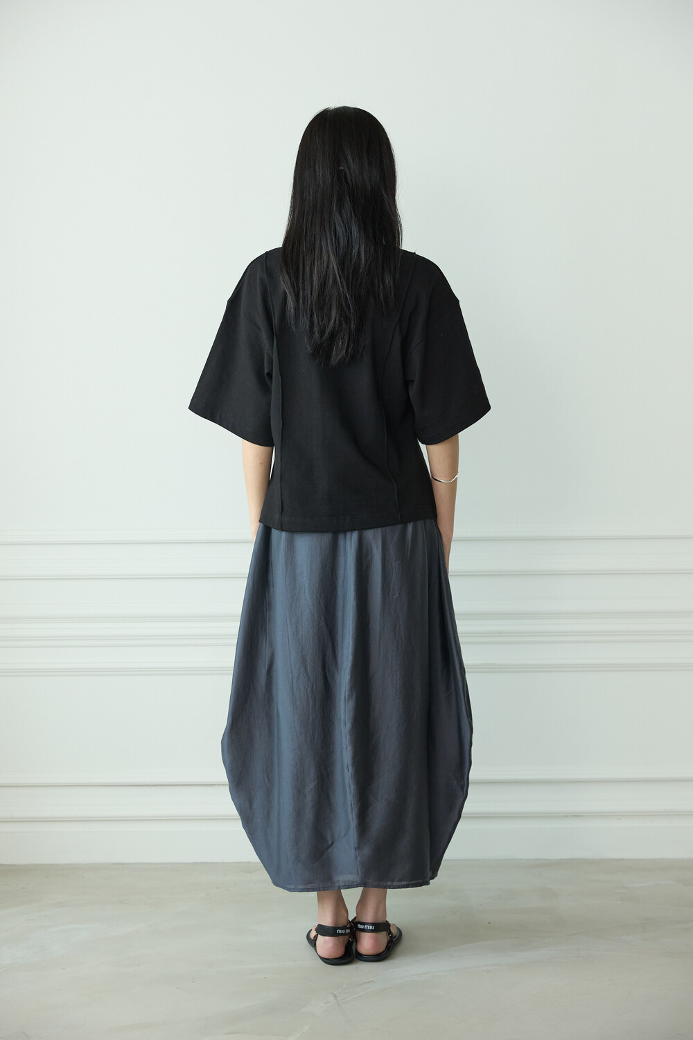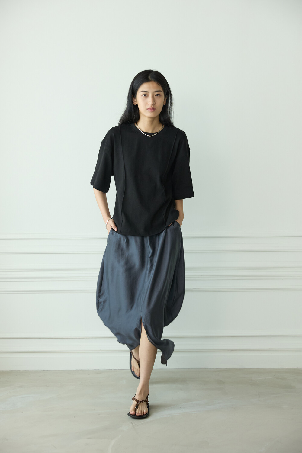 원단의 은은한 광택과 편안한 커브라인이 매력적인 스커트 입니다.