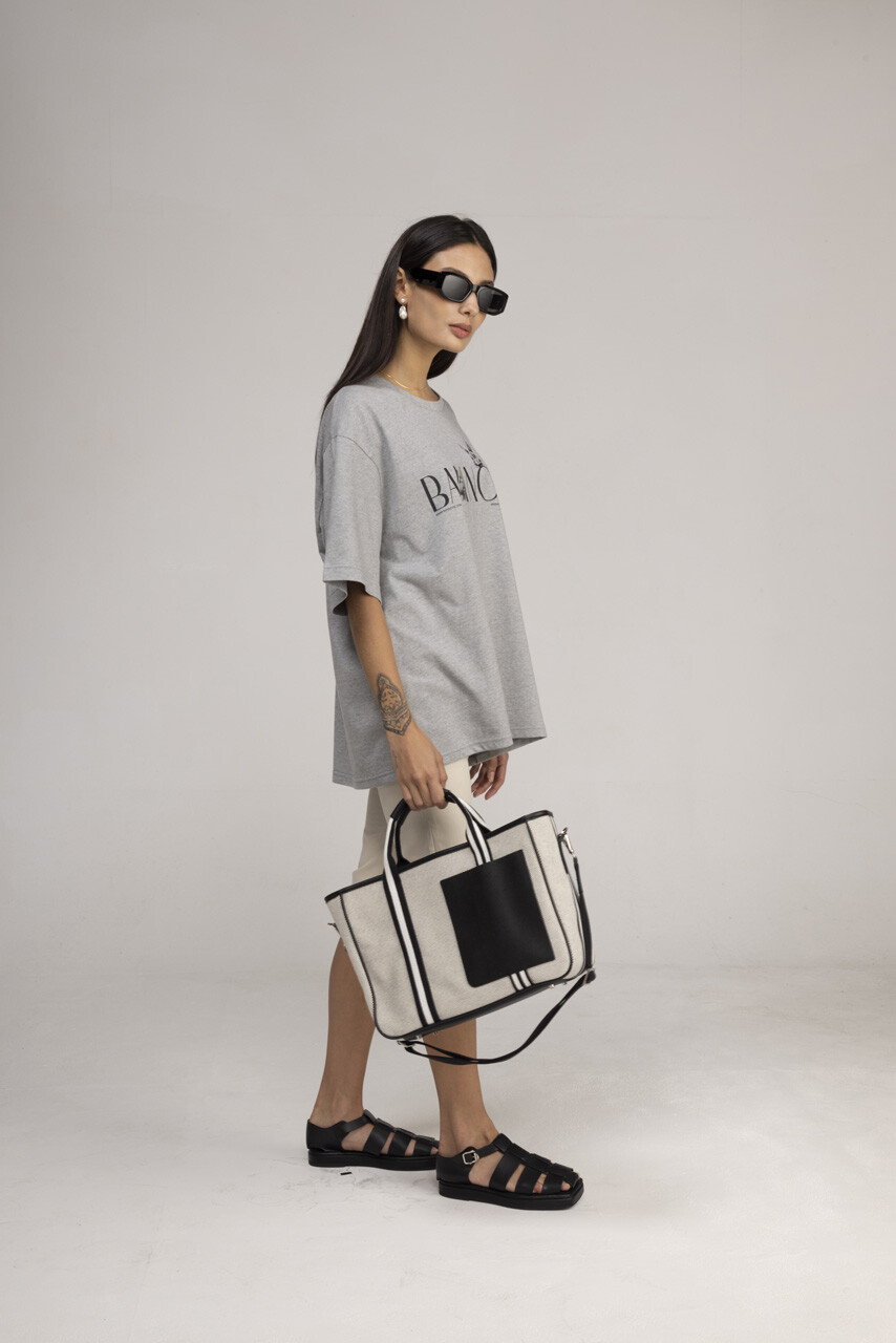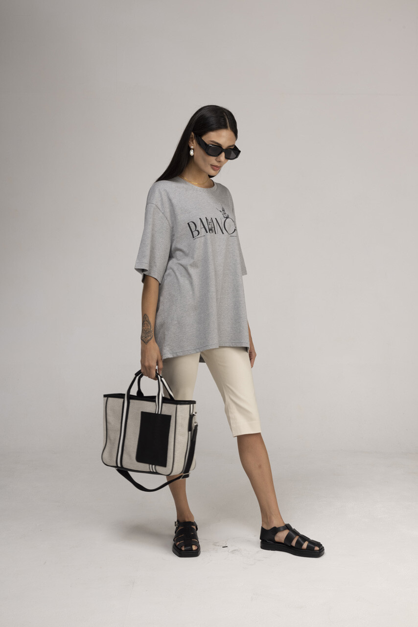 오버핏 실루엣의 면 티셔츠이며 활용도가 높은 아이템입니다.