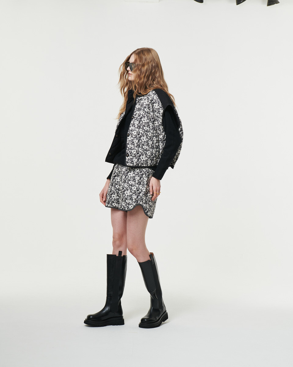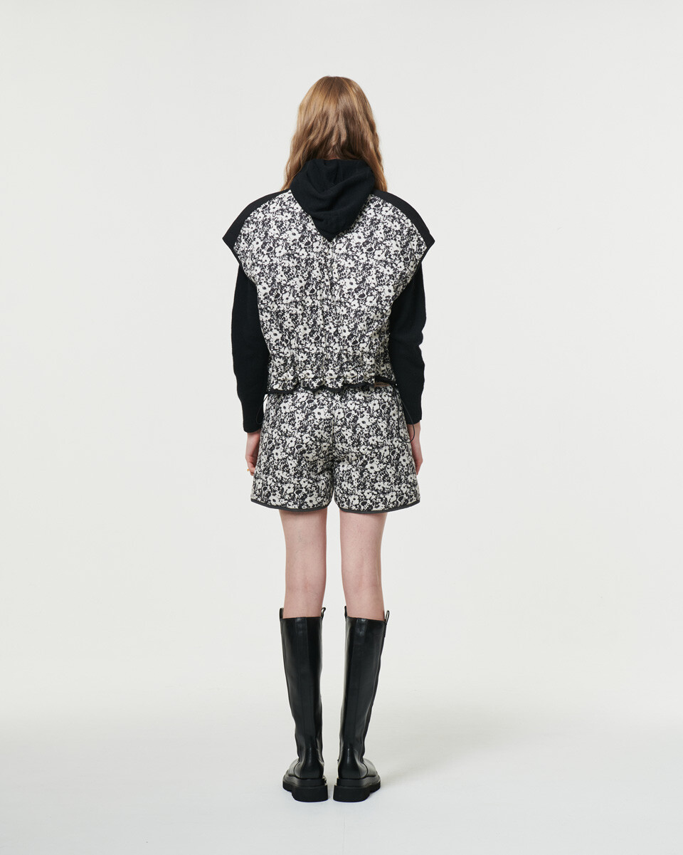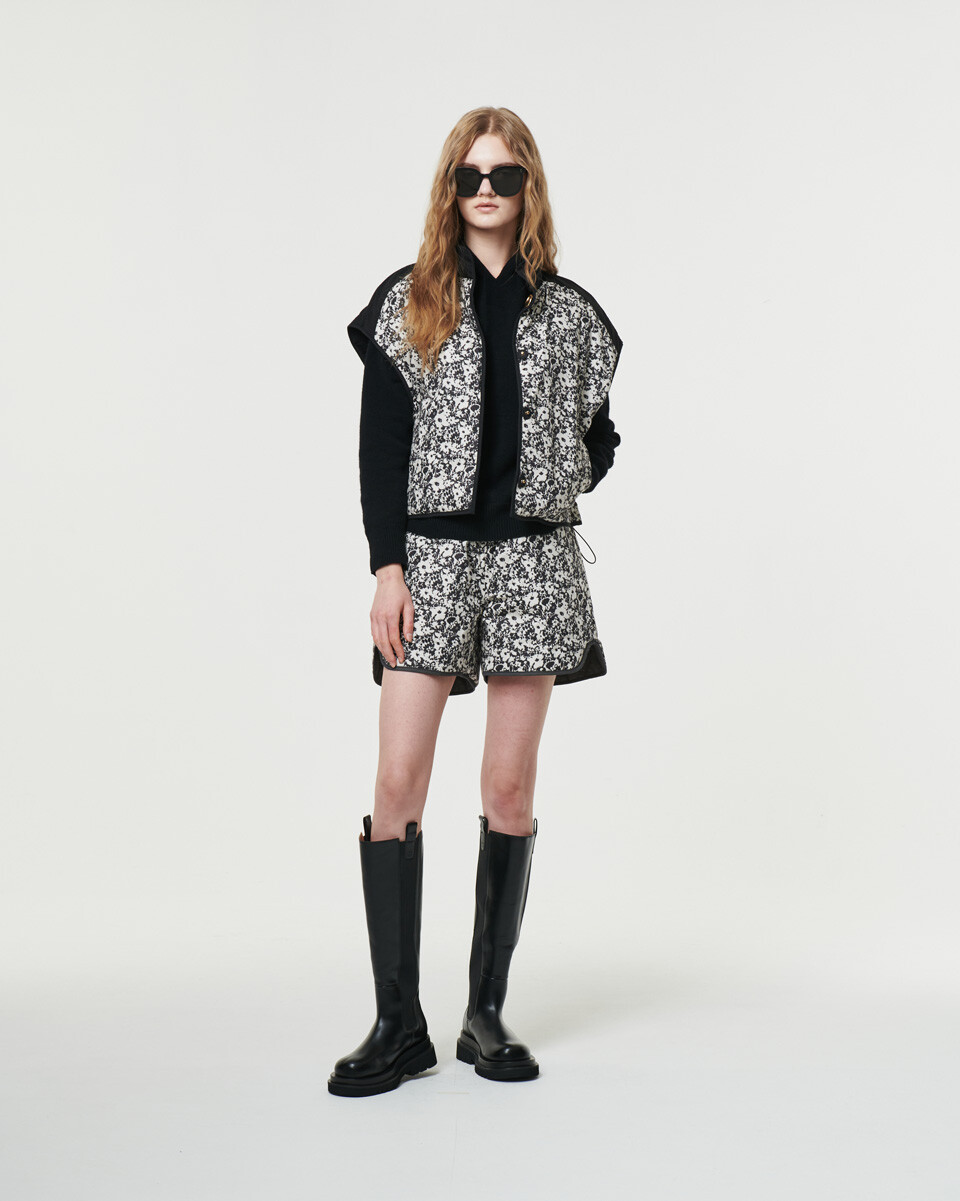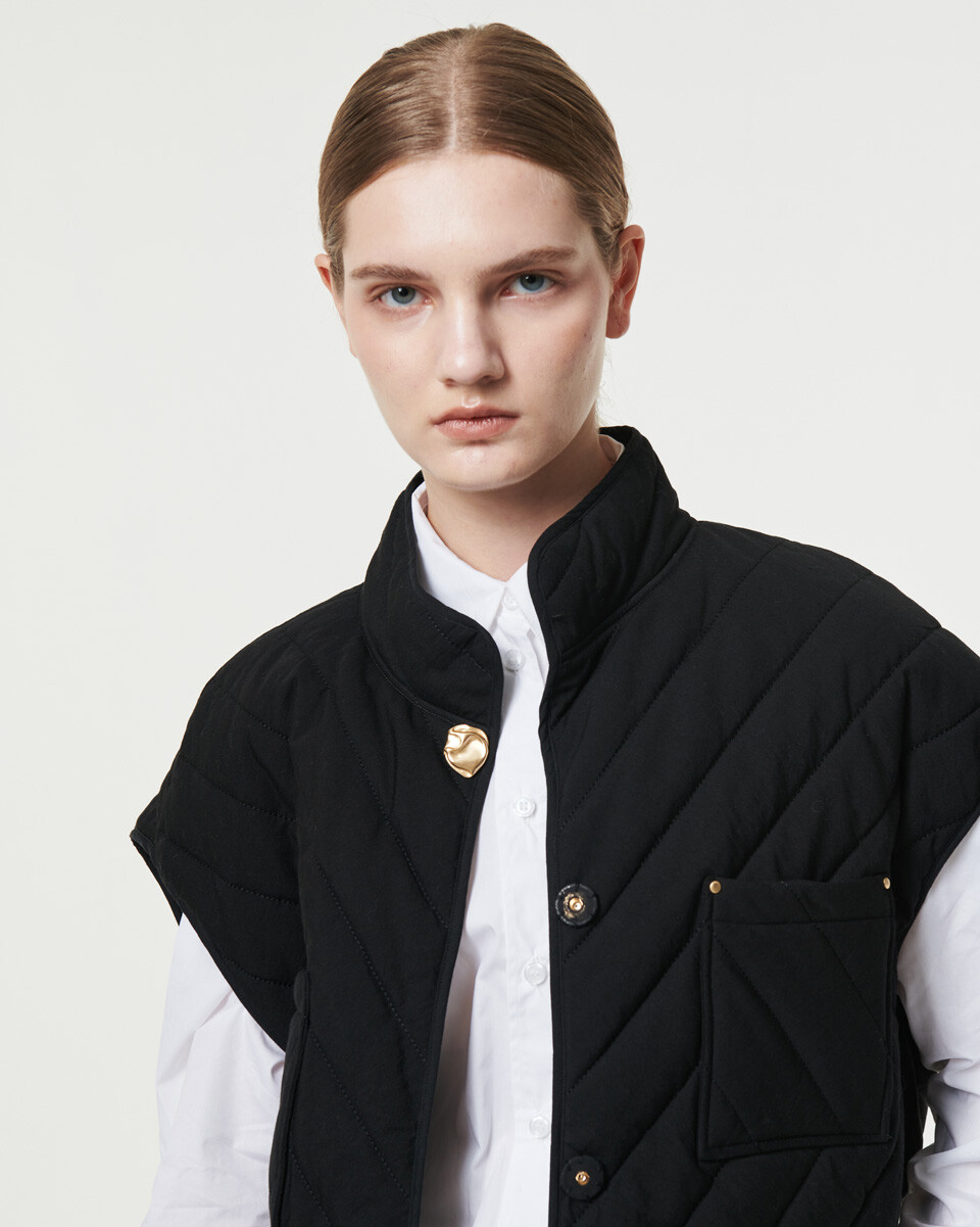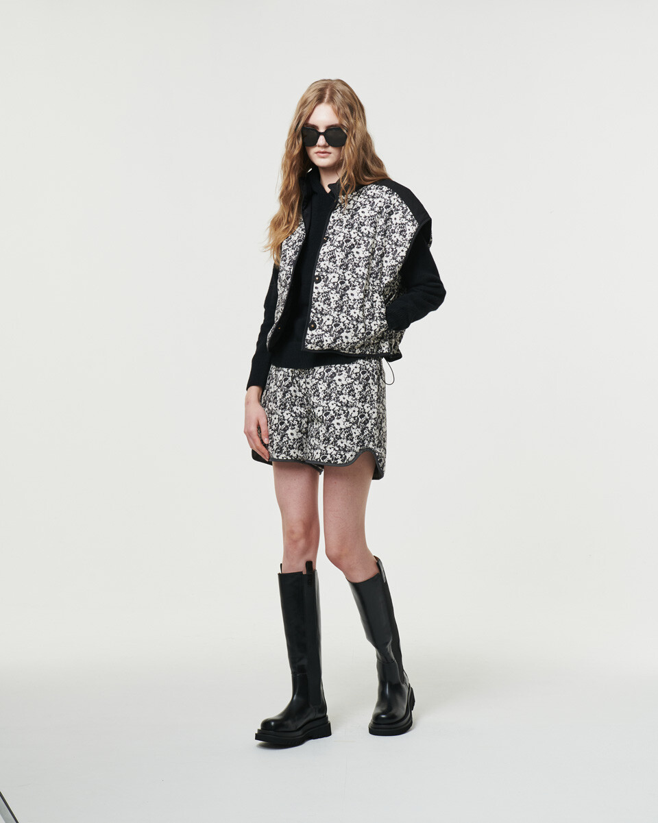 퀼팅된 블랙색상 베스트와 프린트베스트로 연출 가능한 활용도 높은 리버서블 베스트입니다.