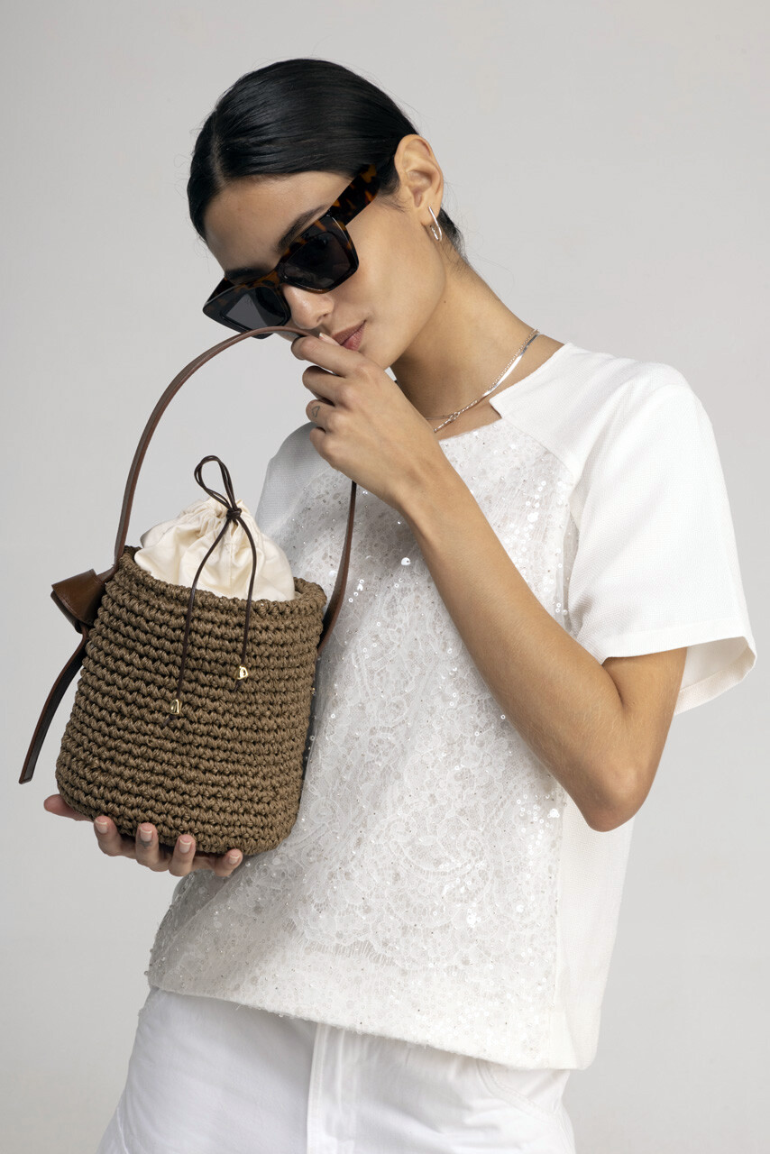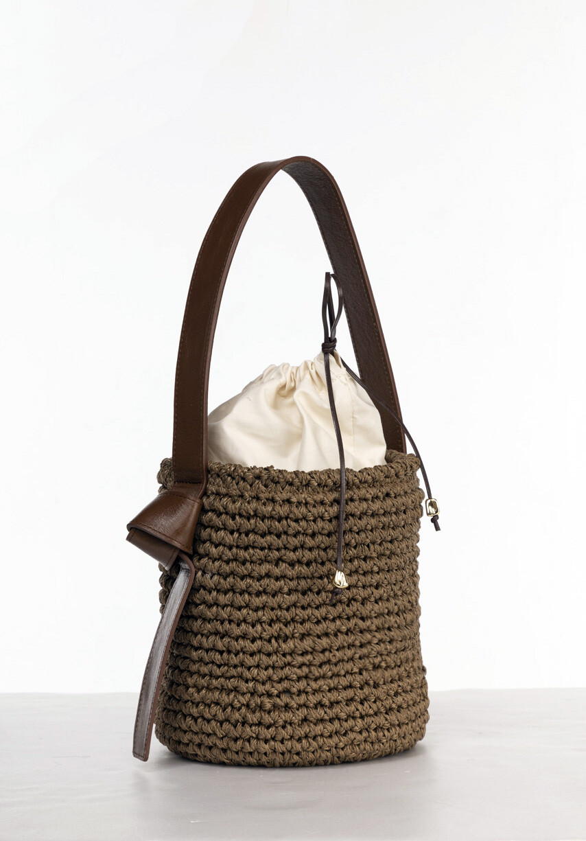 계절감이 느껴지는 실로 짜여진 니트와 가죽의 조화가 고급스러운 시즌백입니다.