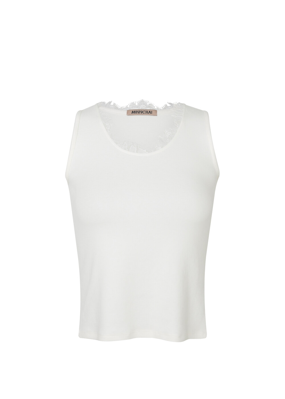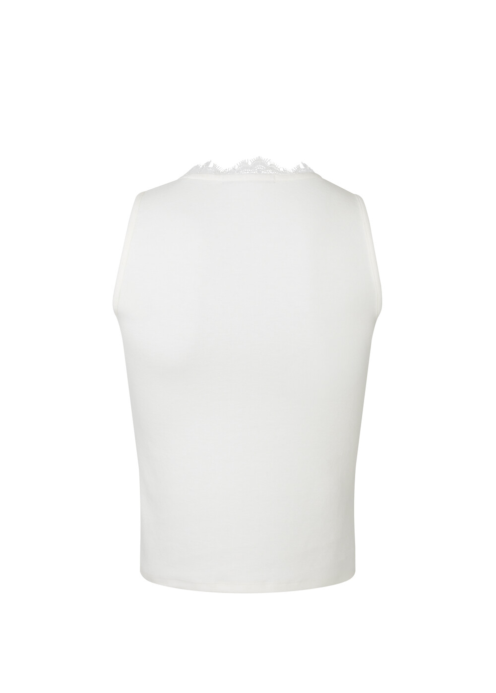 신축성이 좋은 은은한 골지 조직으로 제작된 레이스 민소매 울 니트 탑입니다.