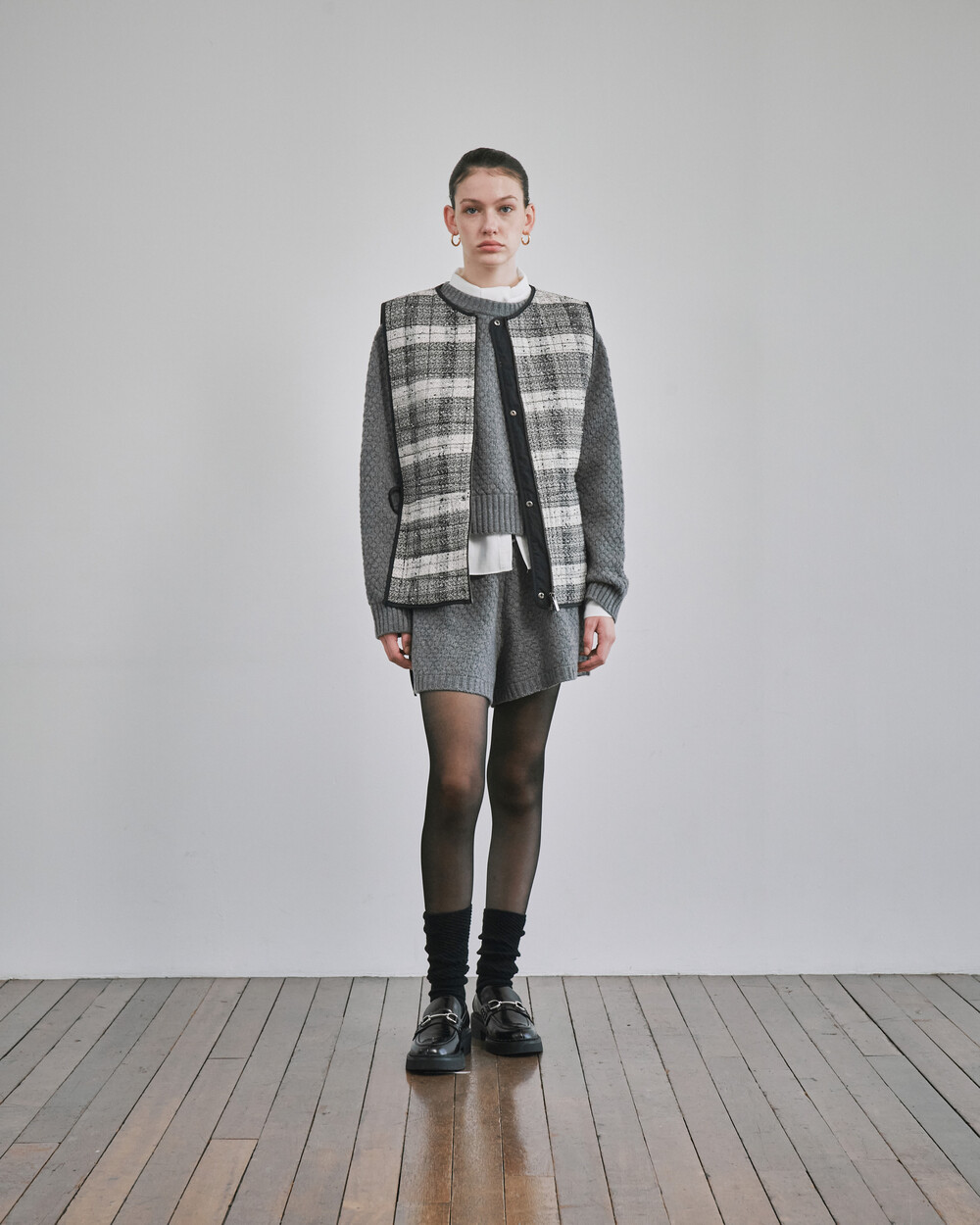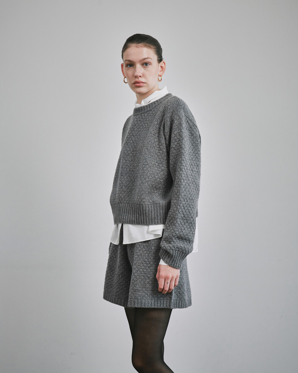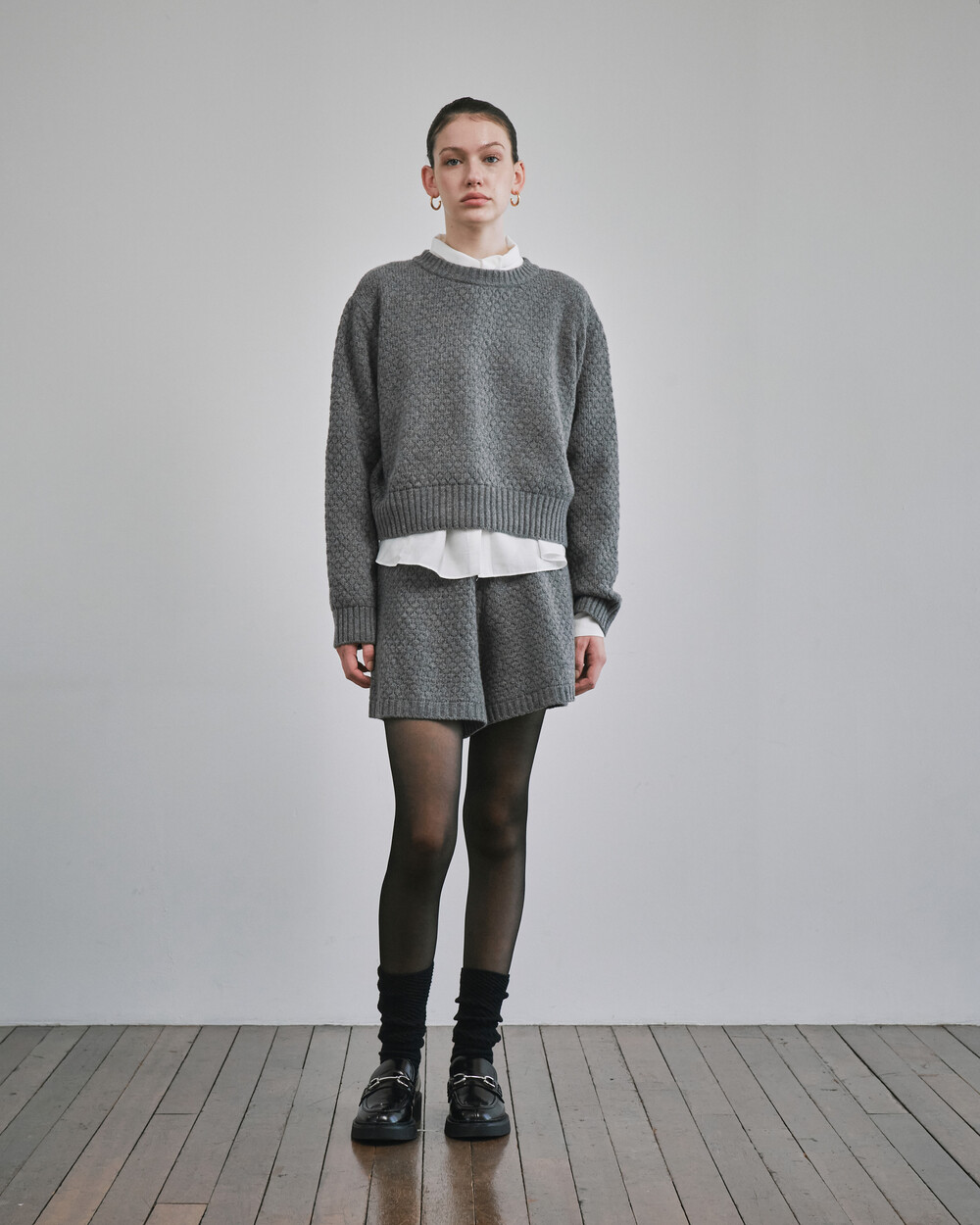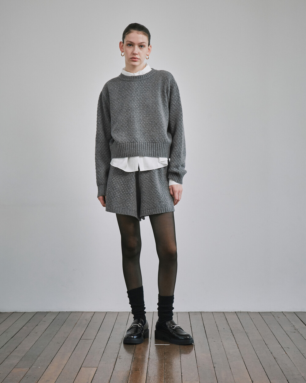 기본실루엣의 롱슬리브 탑과 하프팬츠로 구성 된 니트 셋트입니다.