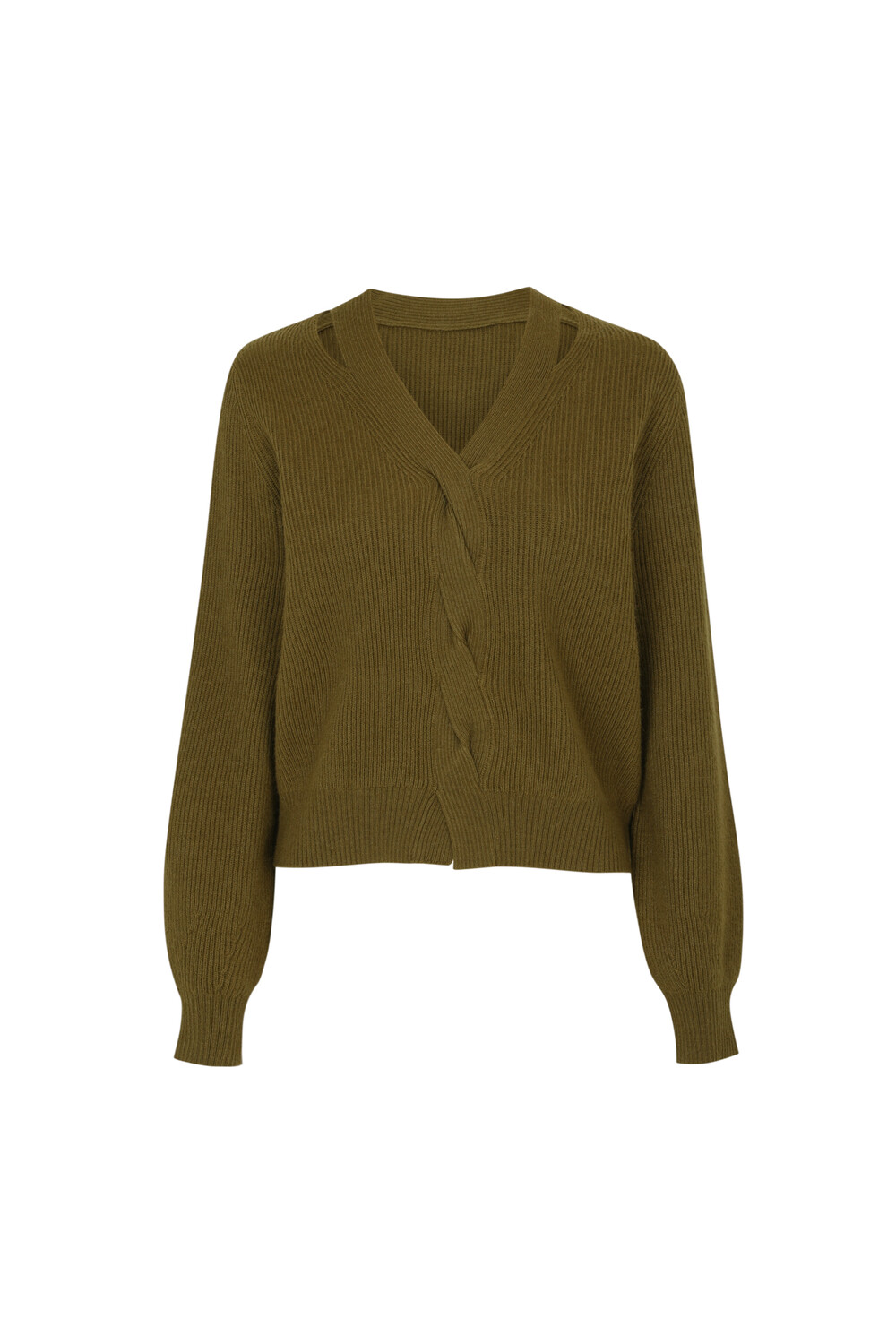 브이네크라인 기본실루엣의 램스울 니트탑입니다.