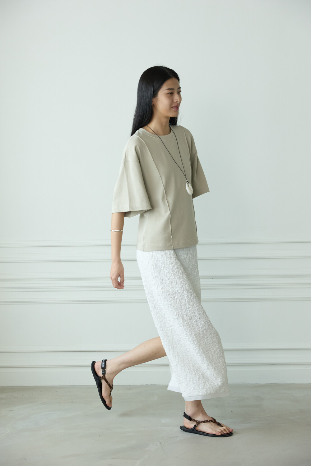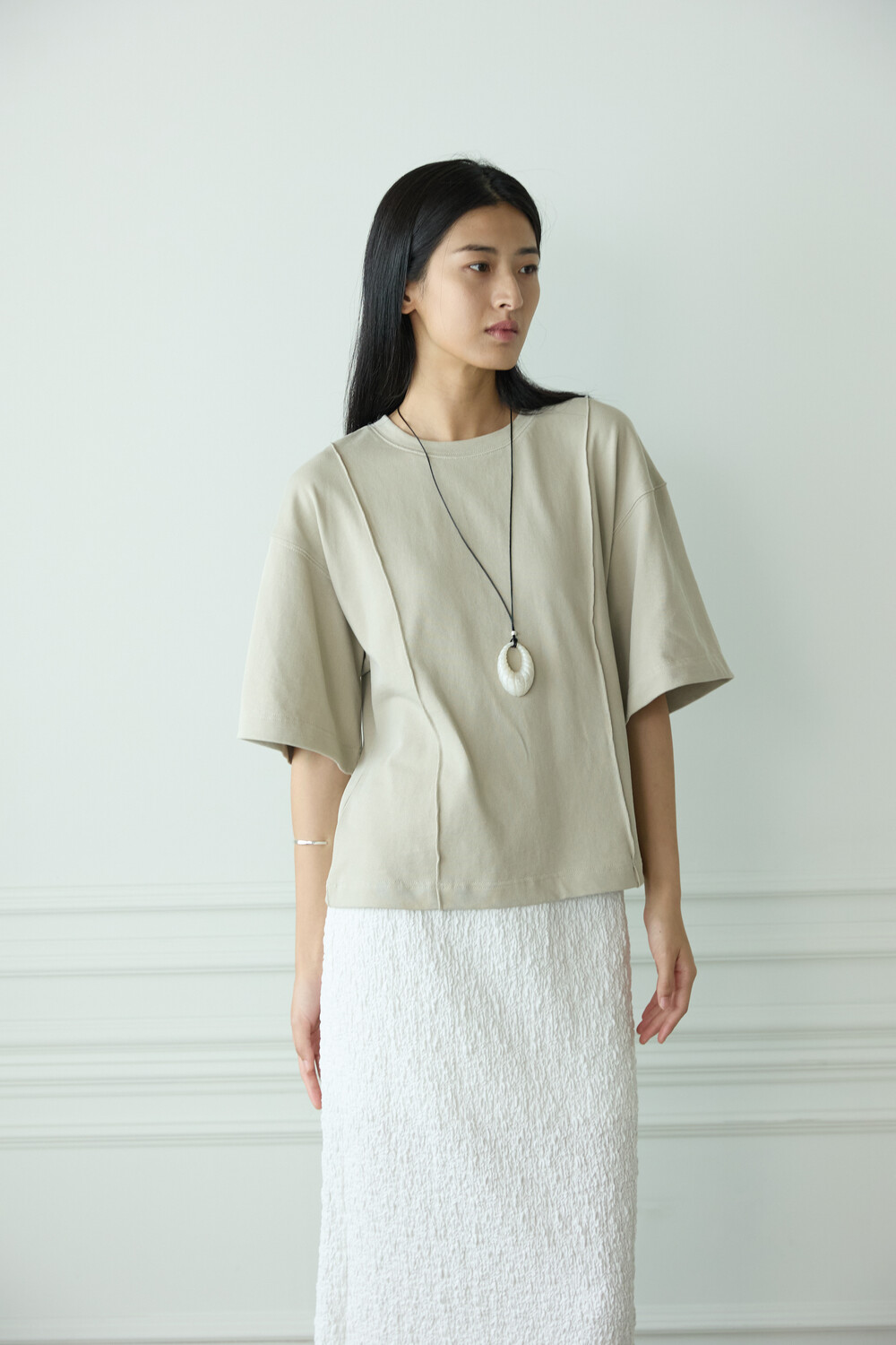 피그먼트 워싱 된 쭈리 원단으로 제작된 루즈한 핏의 탑입니다.