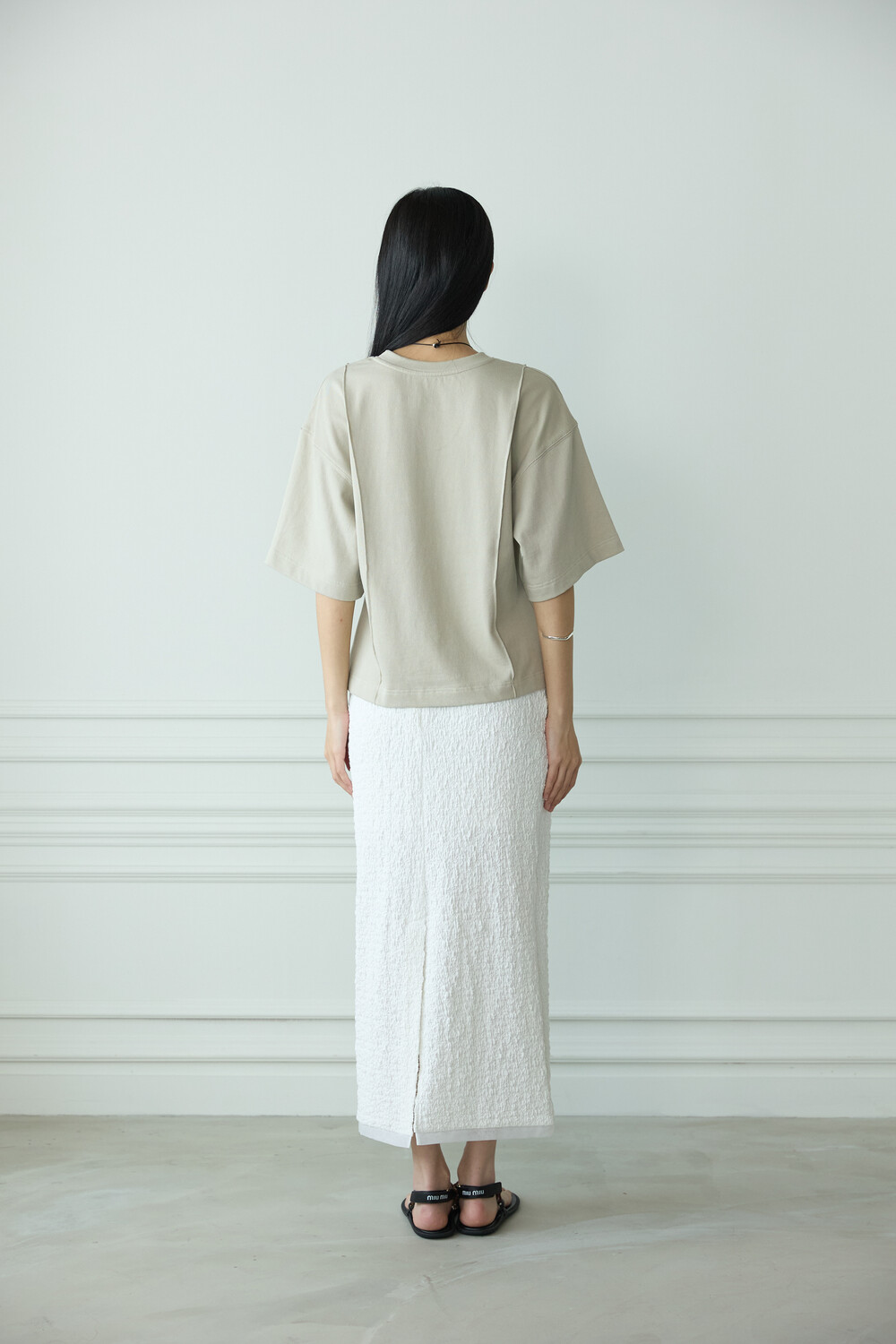 살짝 들어간 허리라인과 핀턱이 시선을 잡아 날씬해 보이는 효과를 줍니다.