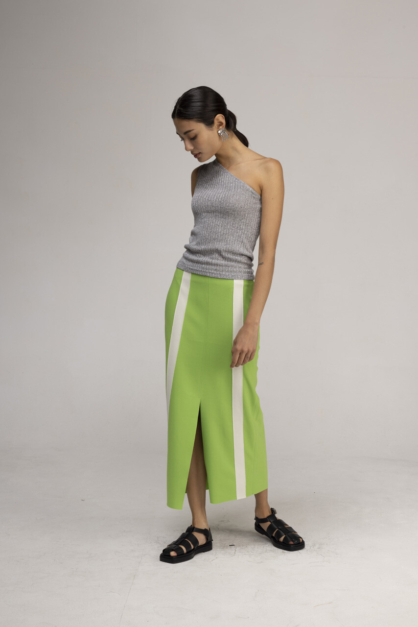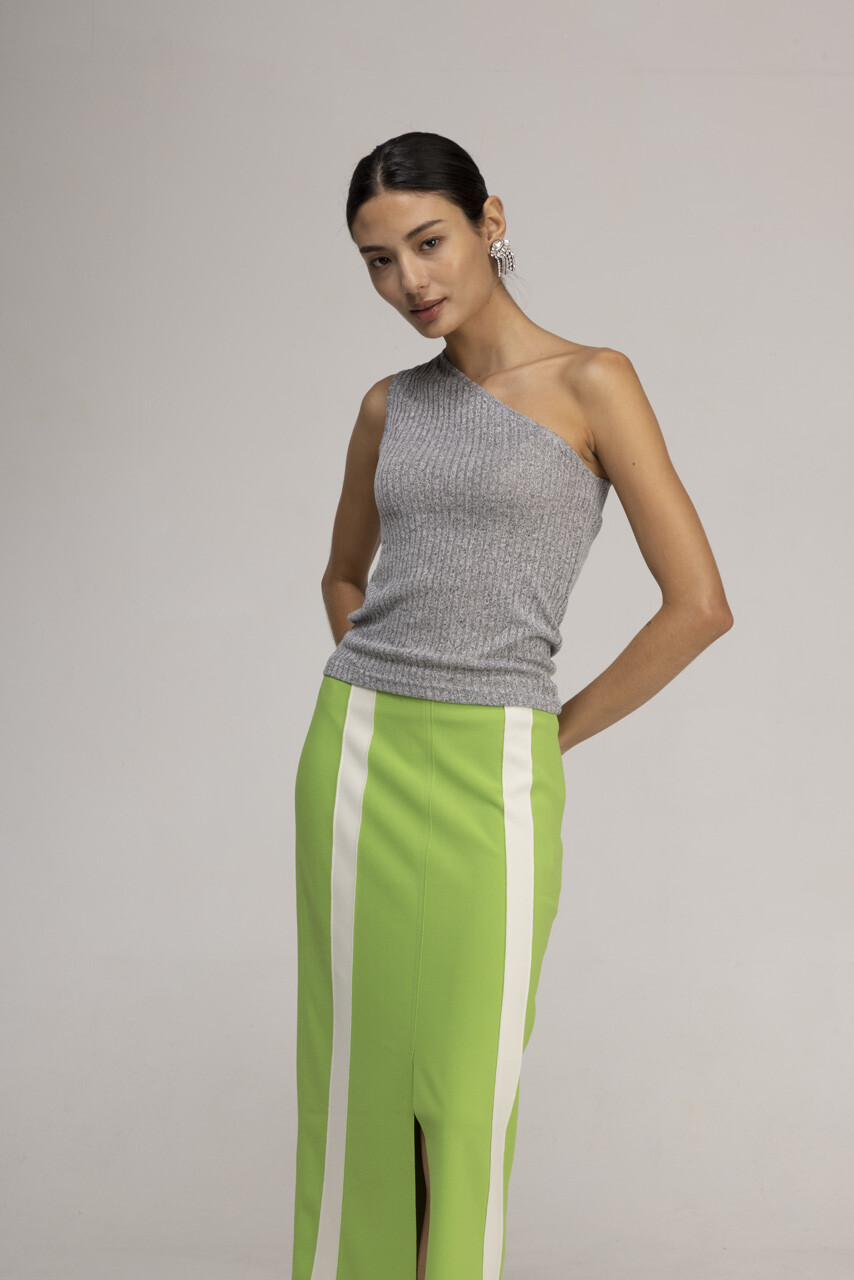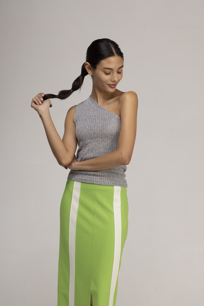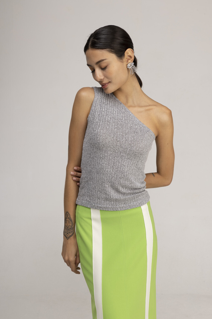 얇은 소재니트로 제작된 원숄더 니트 탑입니다.
