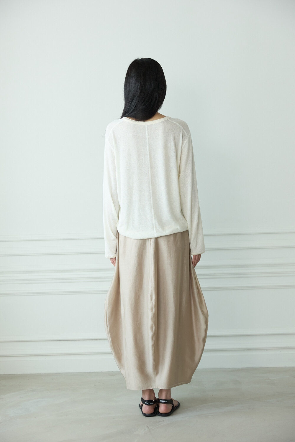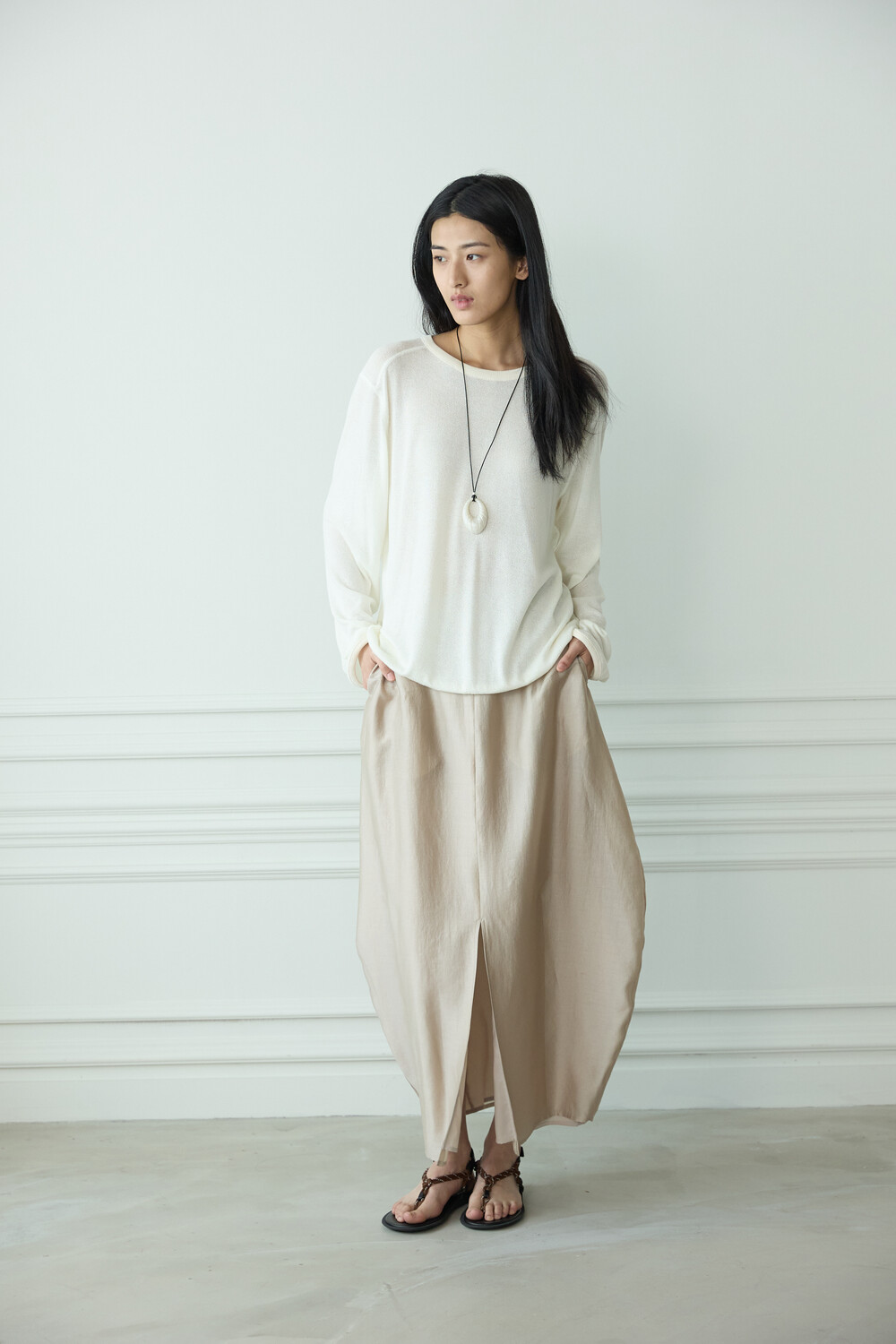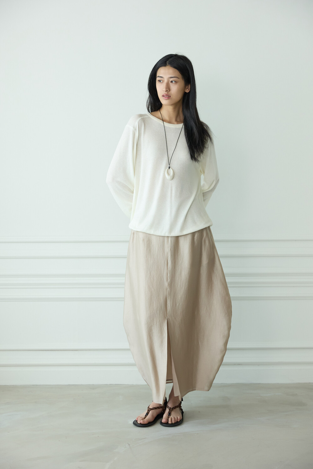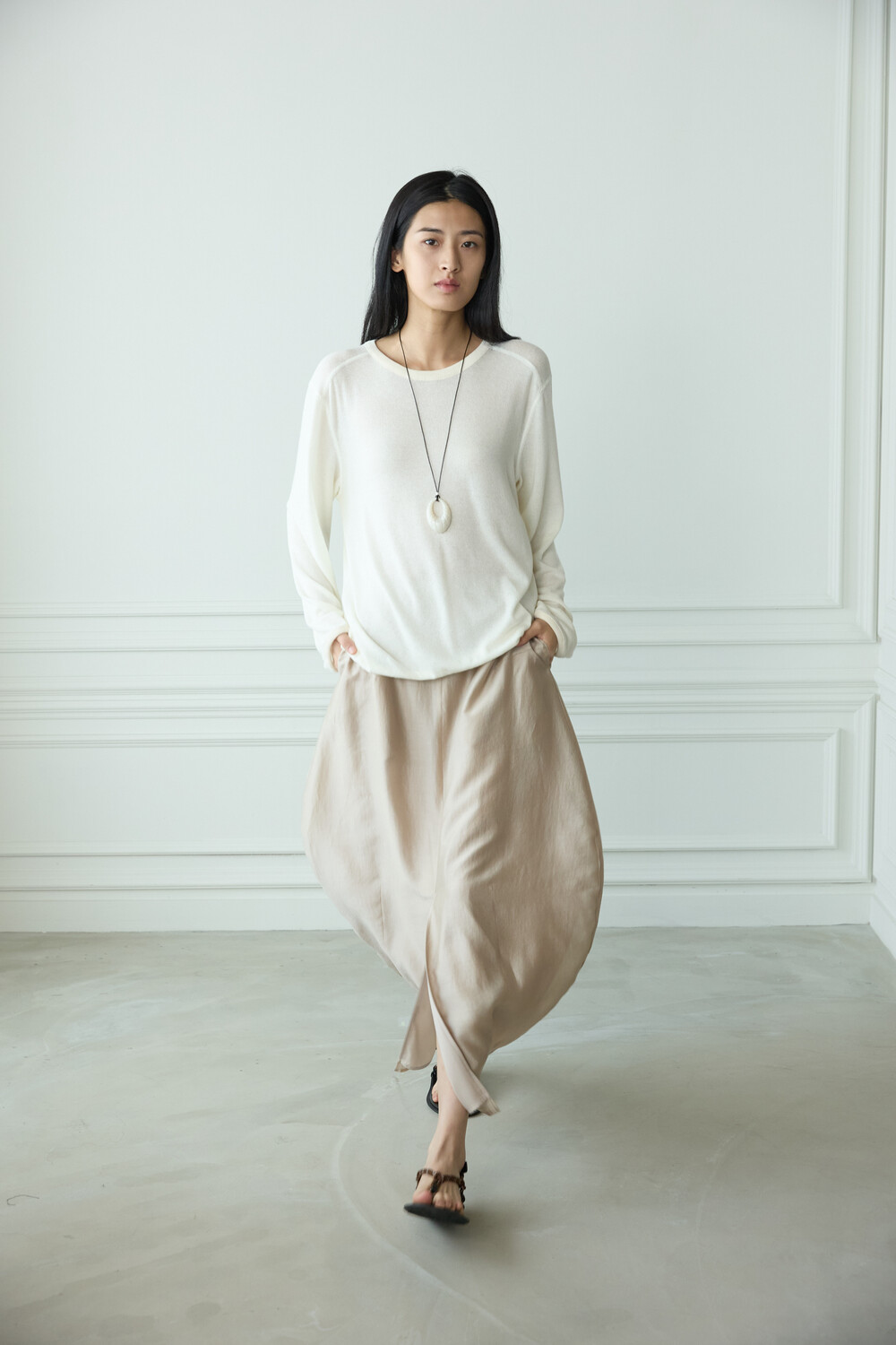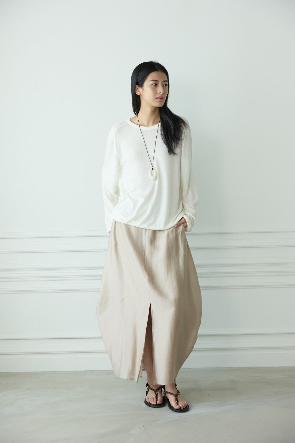원단의 은은한 광택과 편안한 커브라인이 매력적인 스커트 입니다.