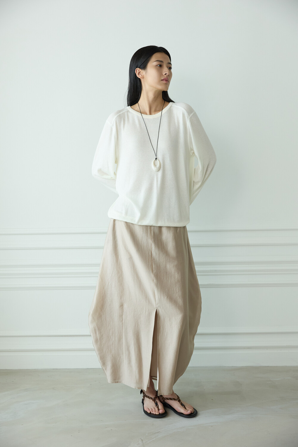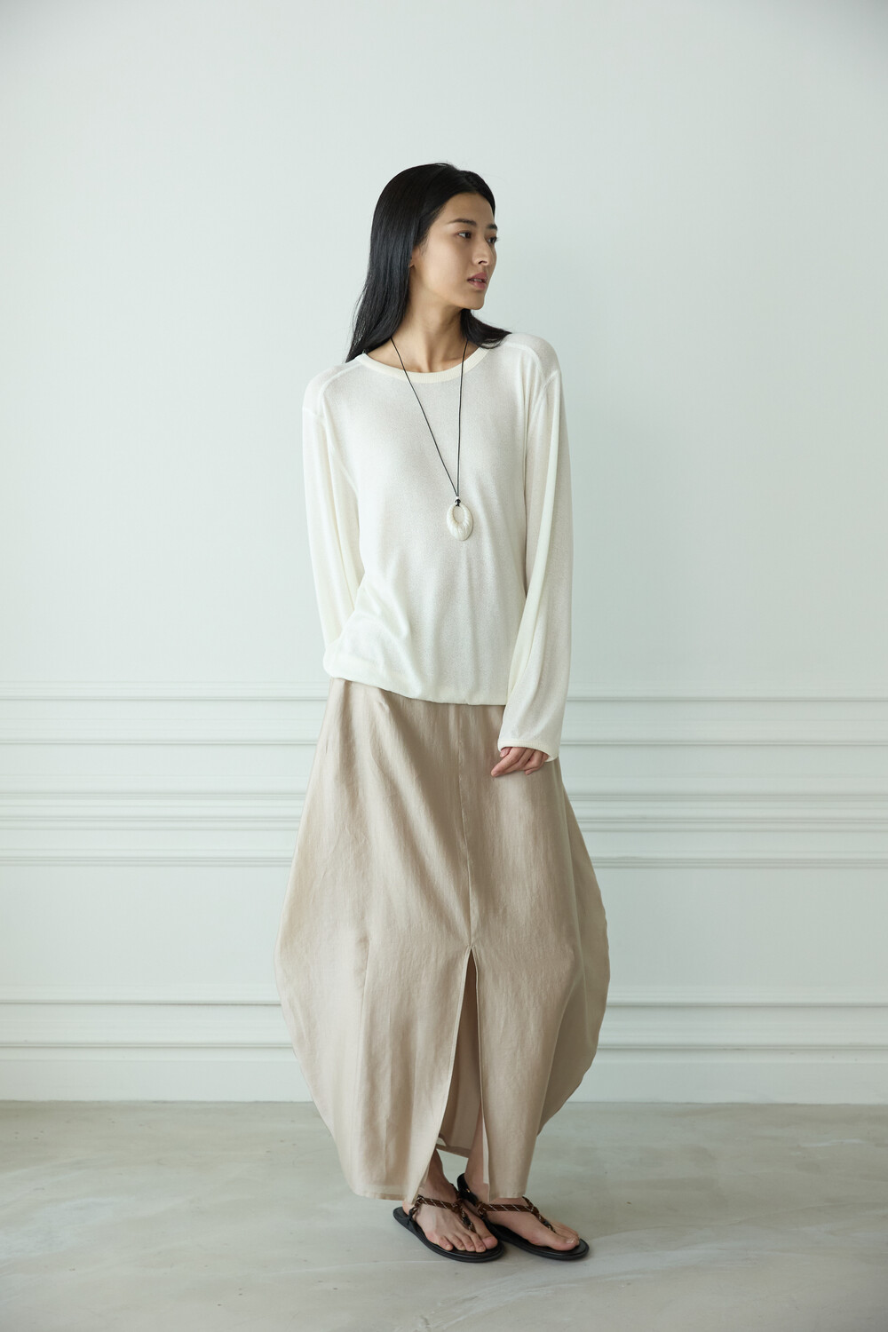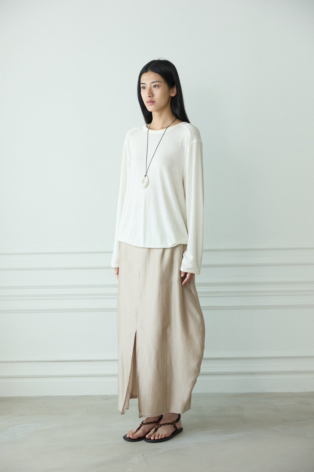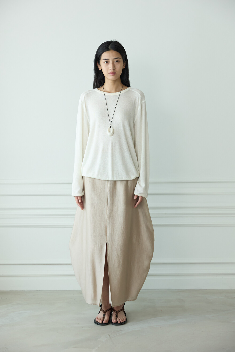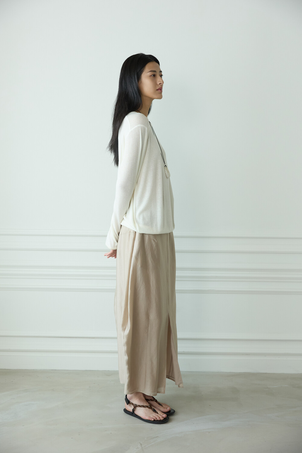 원단의 은은한 광택과 편안한 커브라인이 매력적인 스커트 입니다.