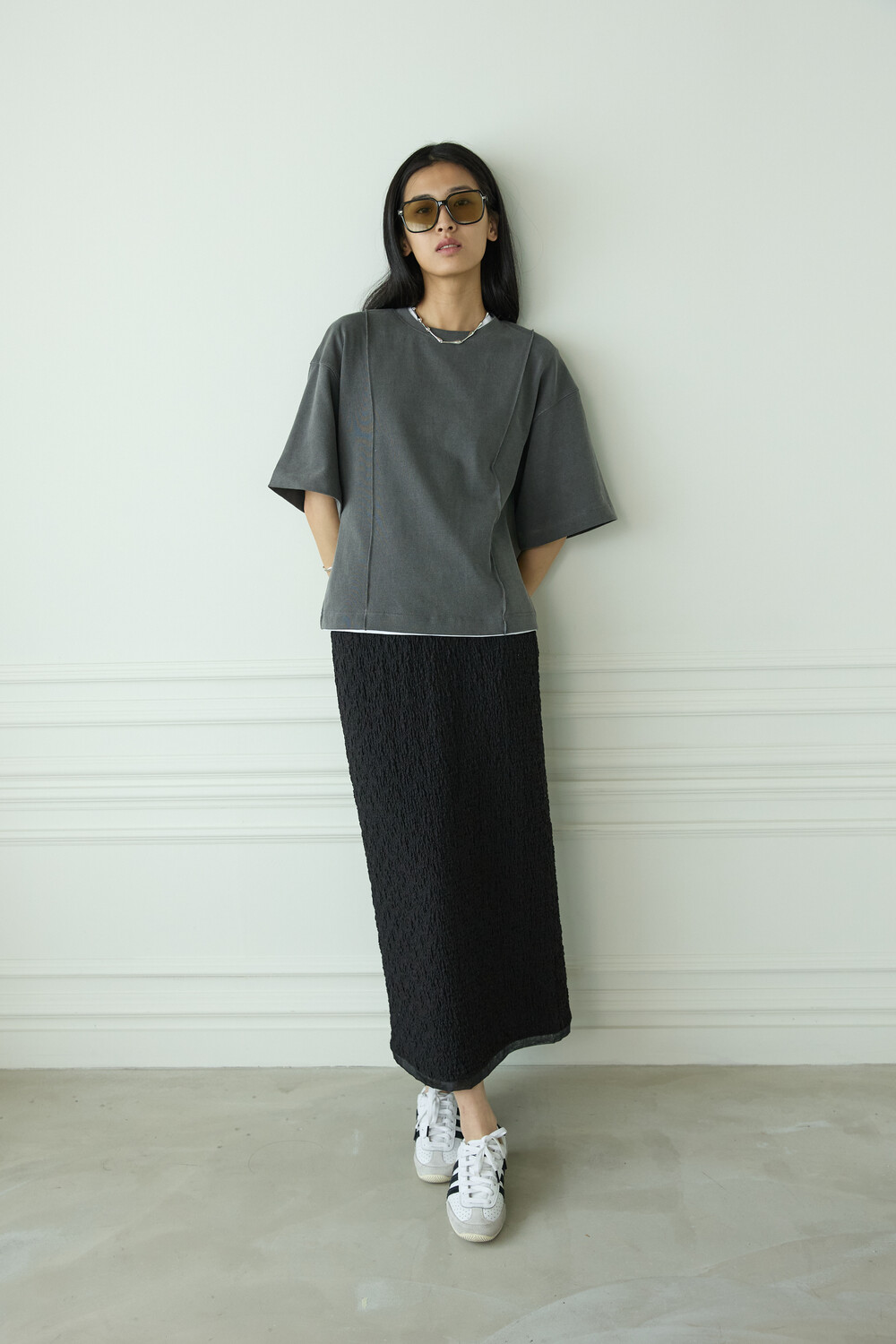 살짝 들어간 허리라인과 핀턱이 시선을 잡아 날씬해 보이는 효과를 줍니다.