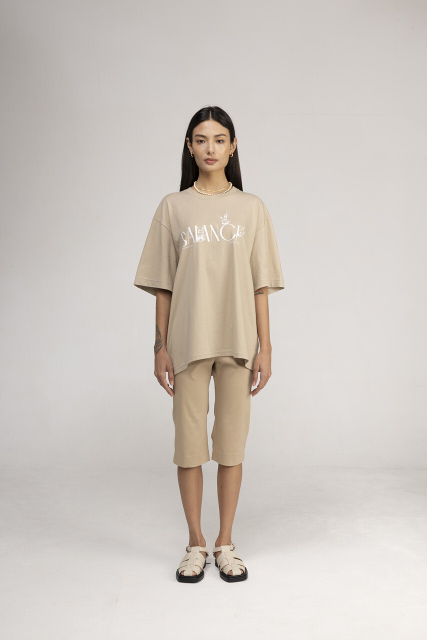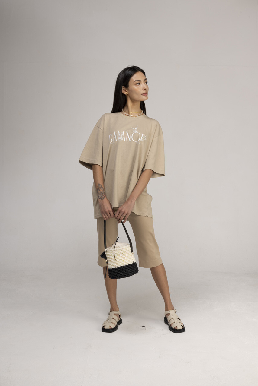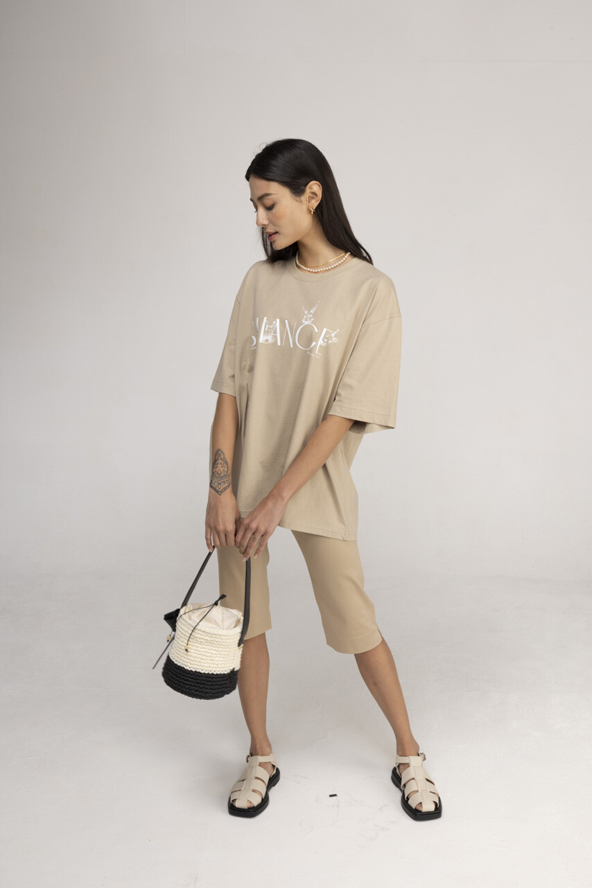 오버핏 실루엣의 면 티셔츠이며 활용도가 높은 아이템입니다.