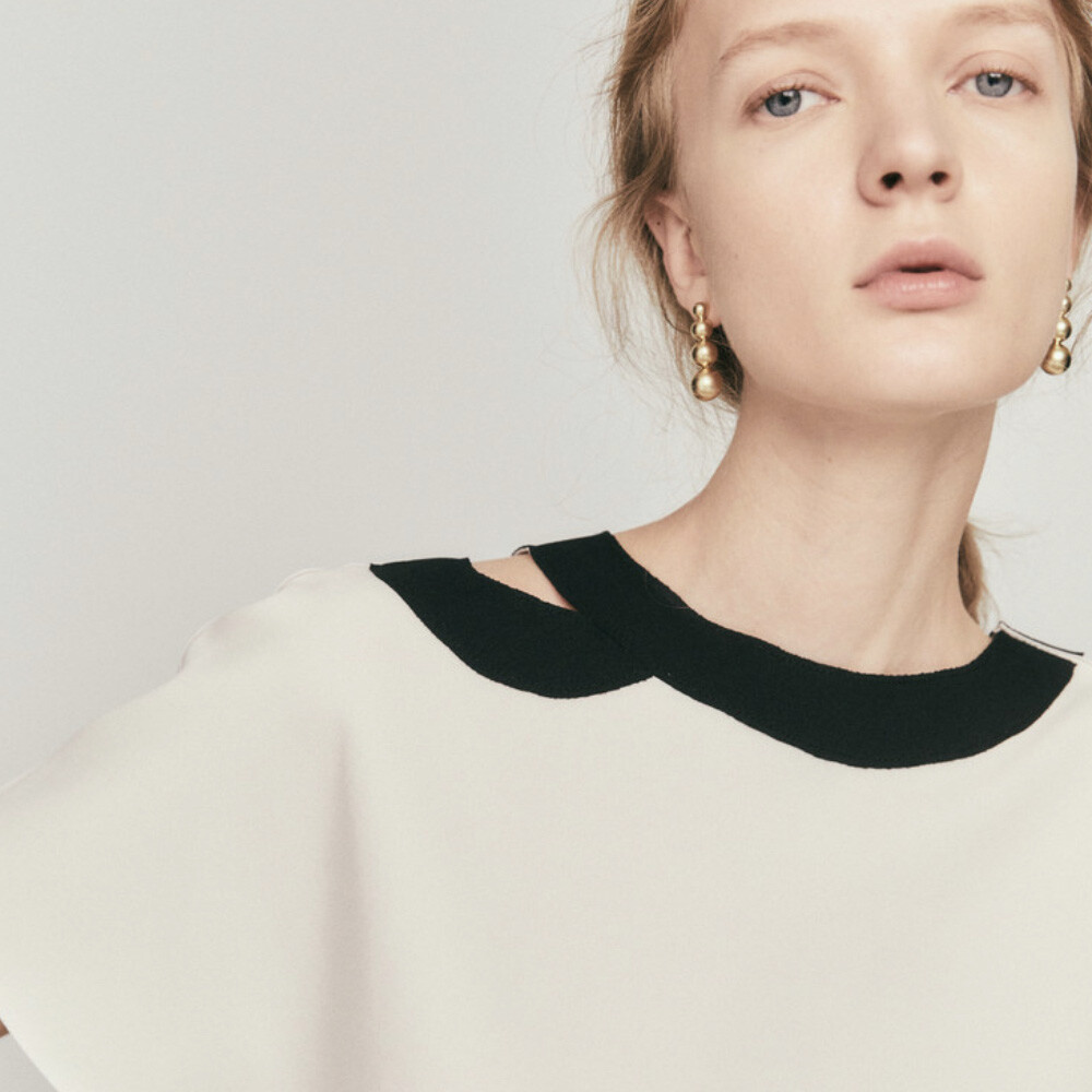 한쪽 어깨의 트임이 단아하면서도 섹시한 포인트를 연출