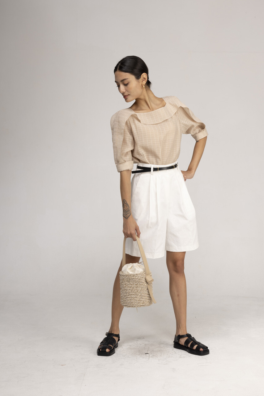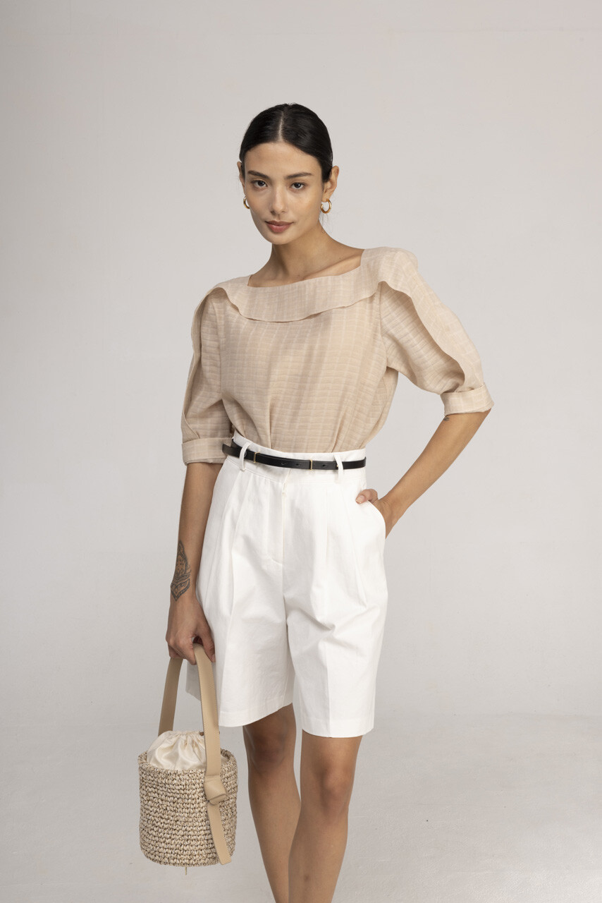 기존 프레임 셔츠 블라우스보다 소매길이가 짧아졌습니다.