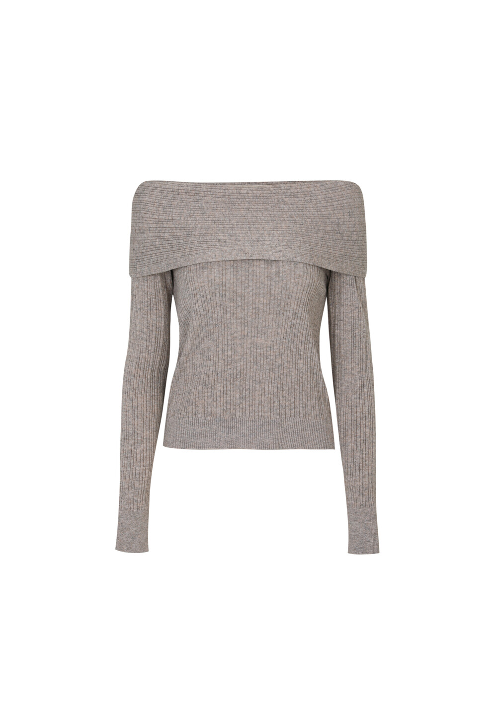 쫀쫀한 조직으로 짜여진 오프숄더 니트 탑입니다.