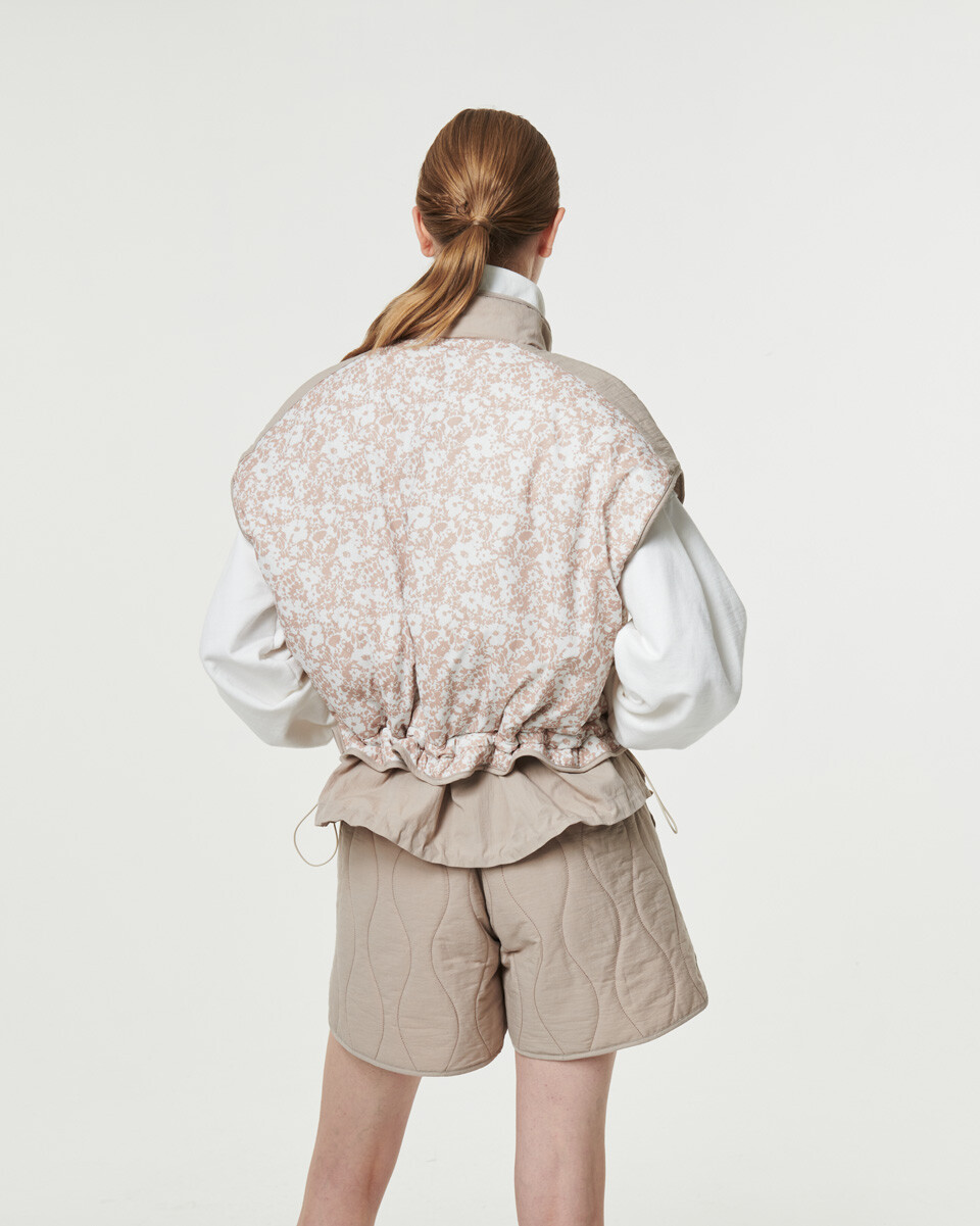 패딩원단과 프린트 원단을 양면으로 착용할 수 있는 실용적이고 독특한 아이템 입니다.