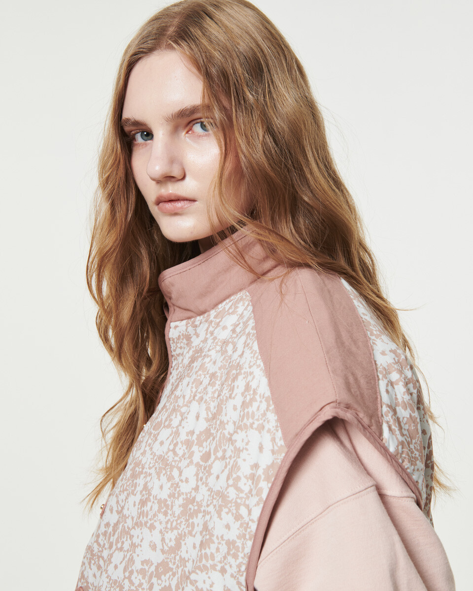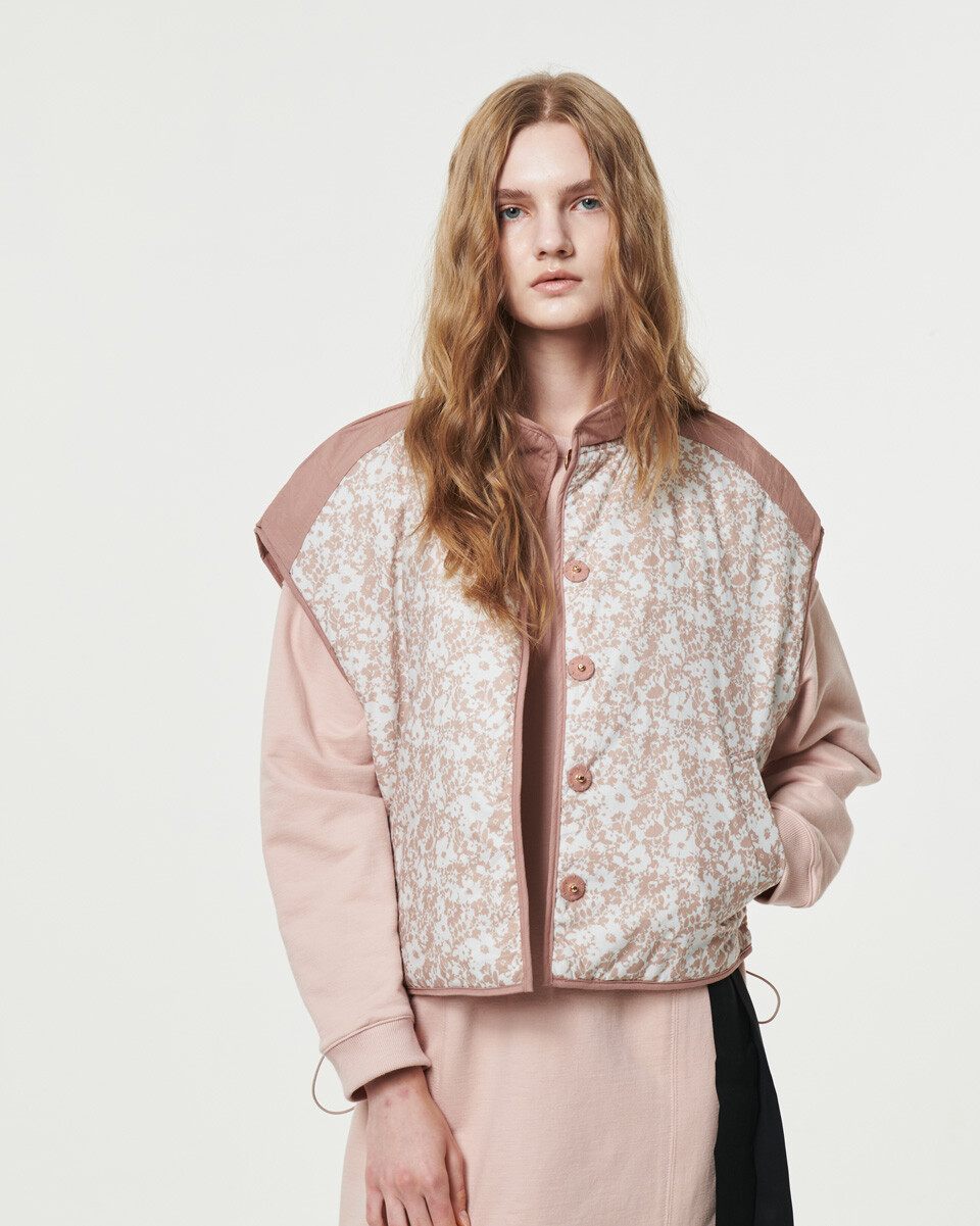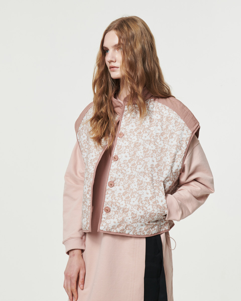 퀼팅된 블랙색상 베스트와 프린트베스트로 연출 가능한 활용도 높은 리버서블 베스트입니다.