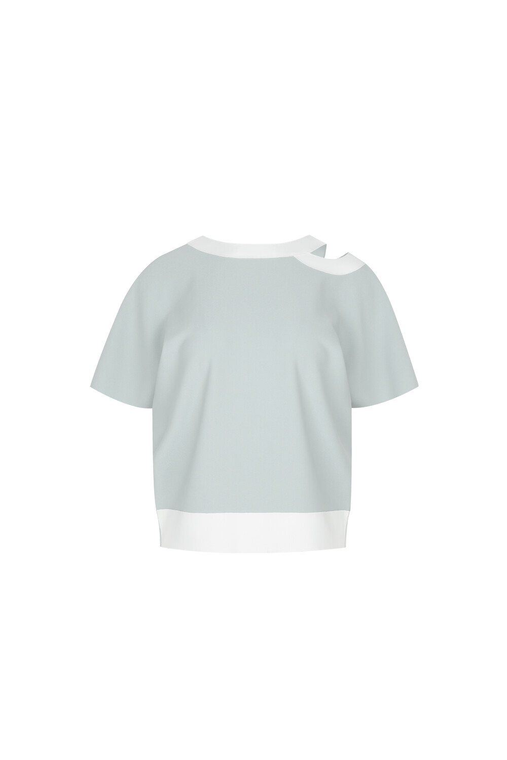 상의의 실루엣이 여유로와 앞,뒤 구분 없이 두가지 타입의 네크라인을 선택하여 착용할 수 있는 탑 입니다.