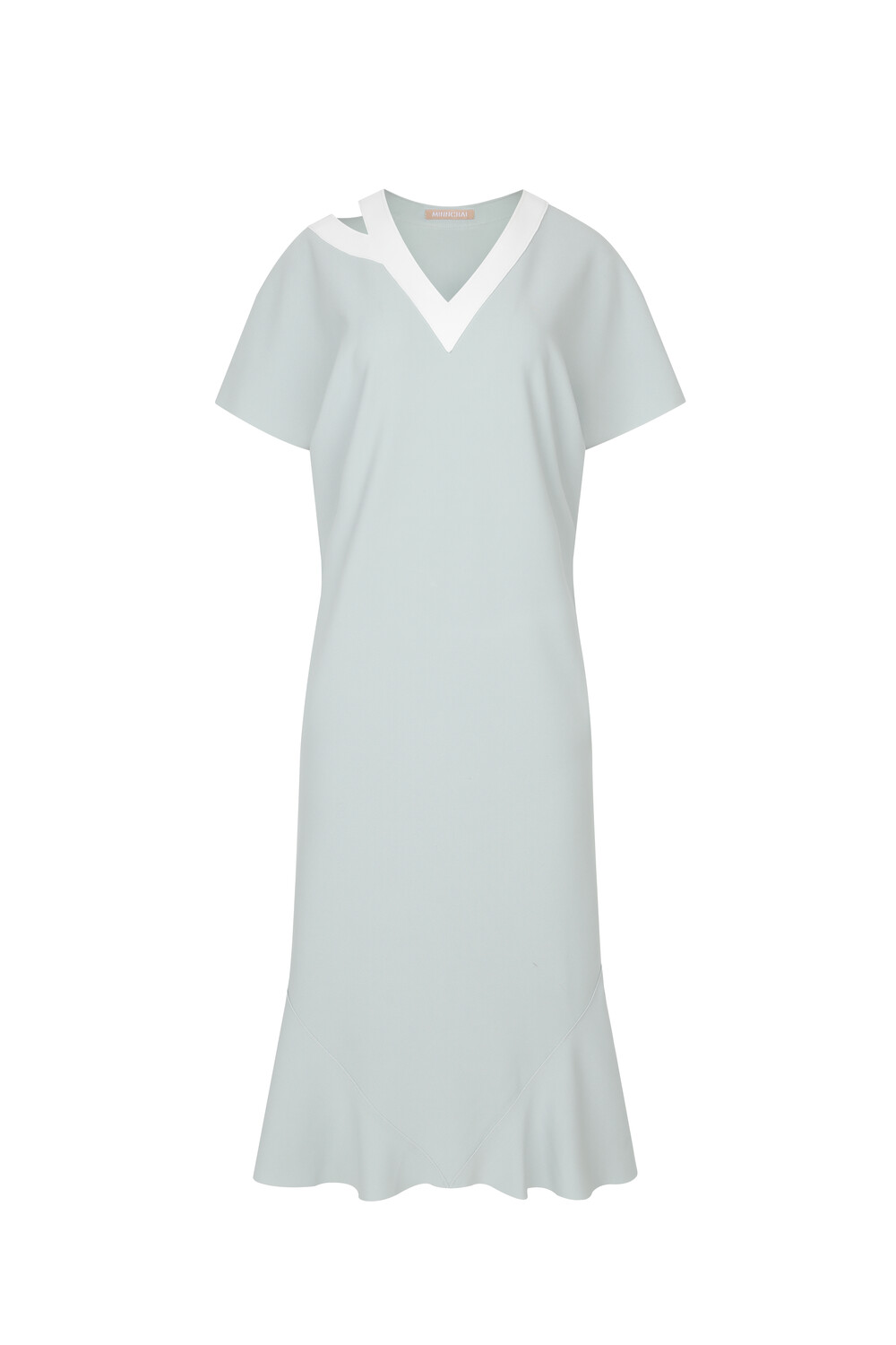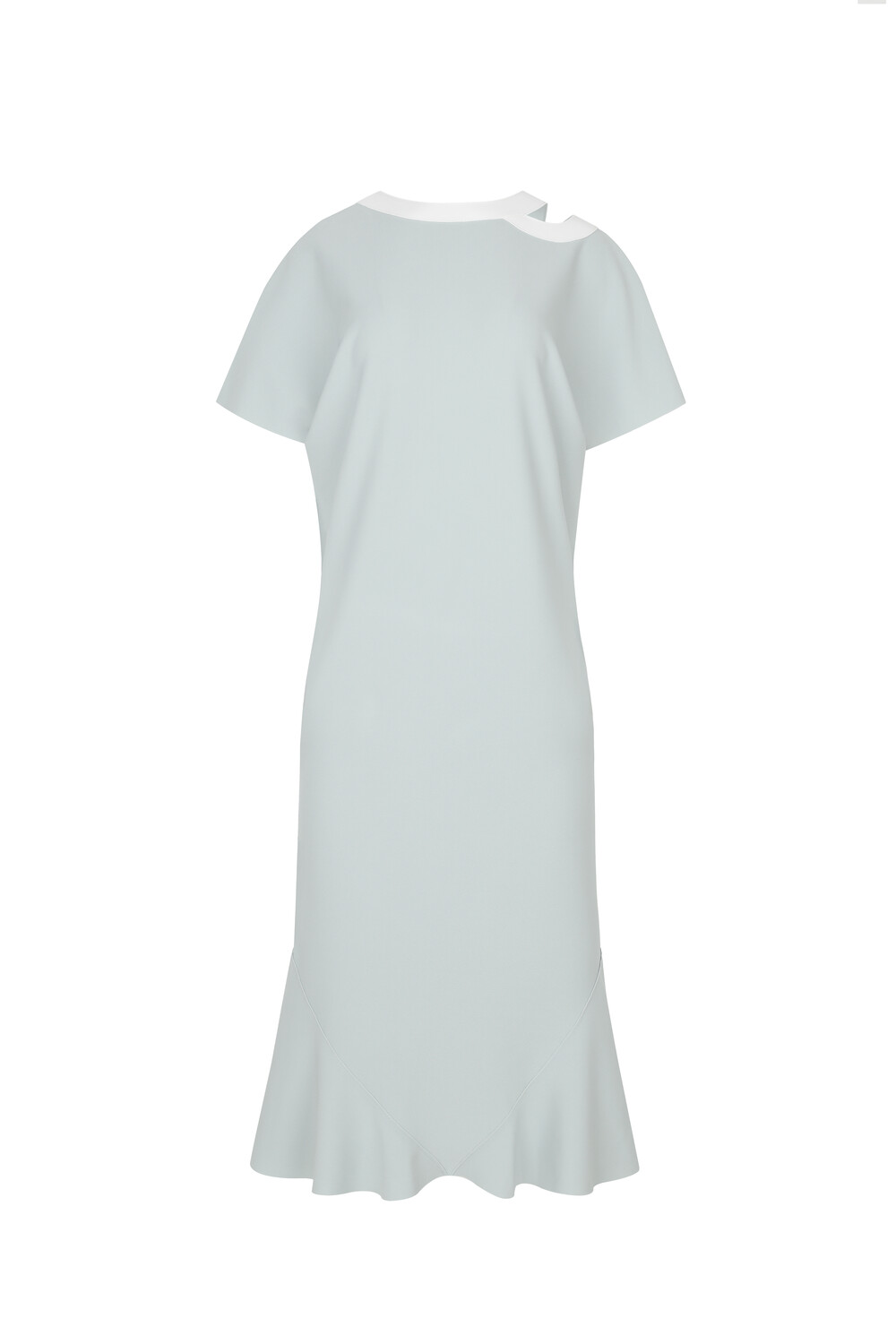 상의의 실루엣이 여유로와 앞,뒤 구분 없이 두가지 타입의 네크라인을 선택하여 착용할 수 있는 드레스 입니다.
