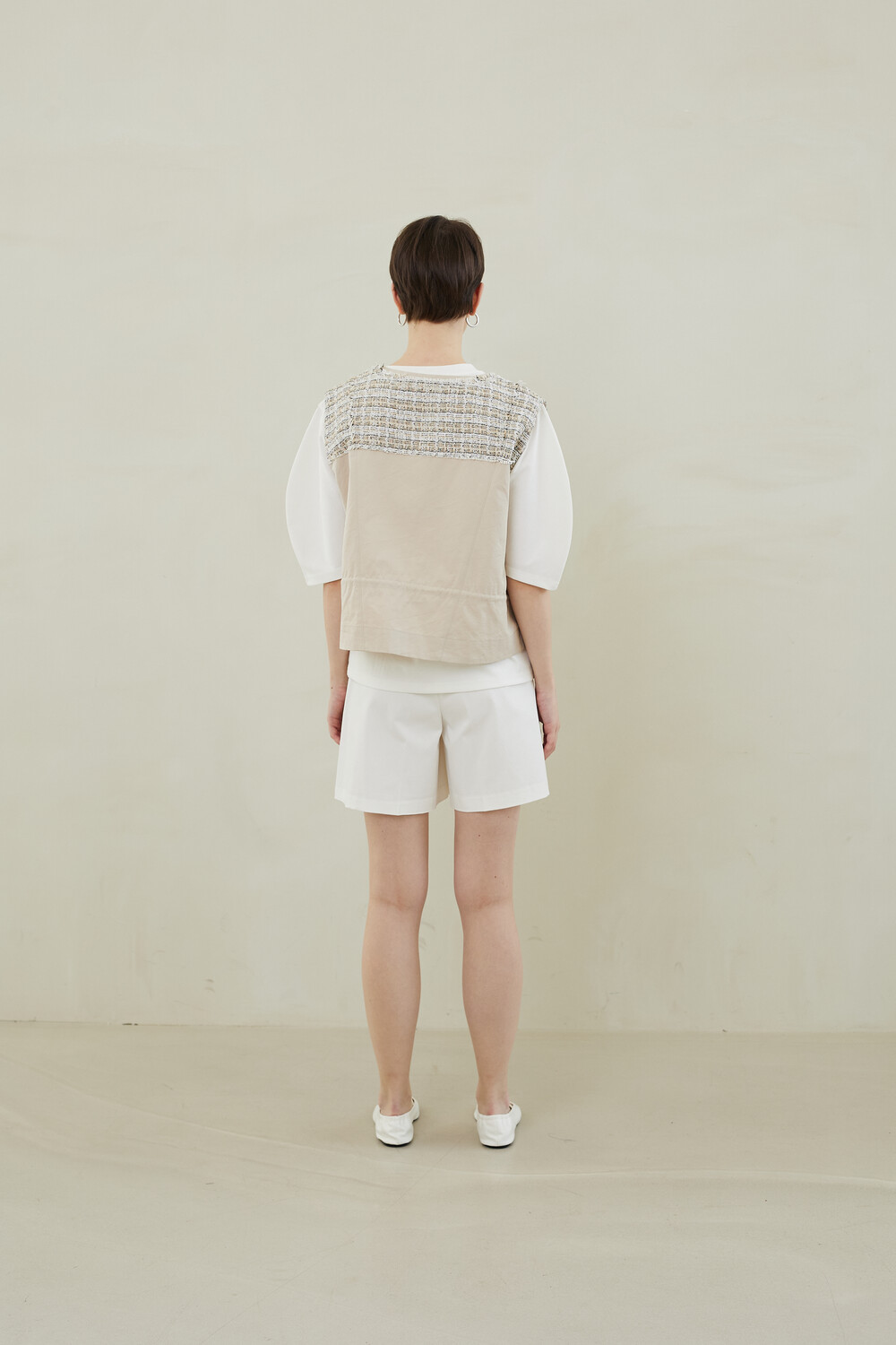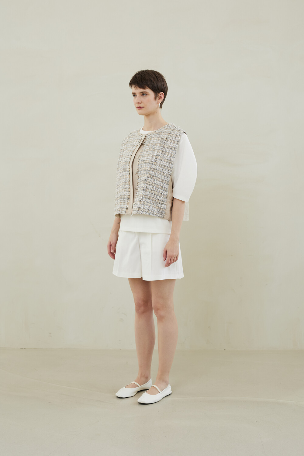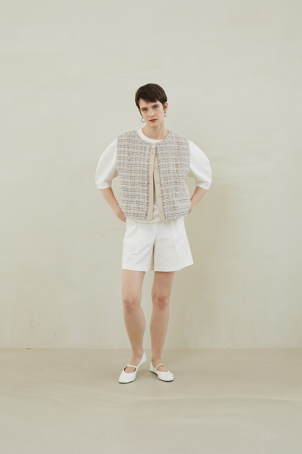 트위드원단과 린넨원단의 조화로우며, 허리부분의 스트링으로 실루엣연출이 자유롭습니다.